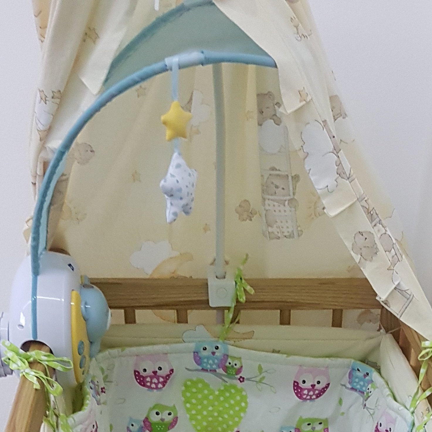 Projektor nad postieľku Chicco Next2Moon je inovatívna hračka na upokojenie dieťaťa, ktorá kombinuje magickú atmosféru projektora prehrávajúceho príbeh a širokej striešky ktorá pôsobí upokojujúcu na dieťa. Projektor pasuje na všetky postieľky Next2Me, ako aj na väčšinu drevených postieľok.