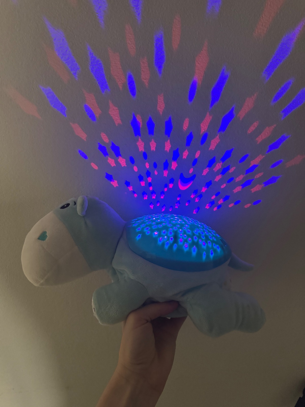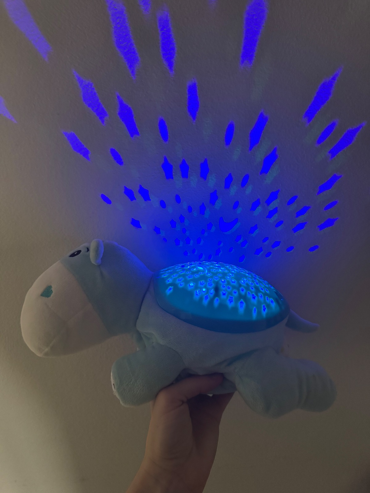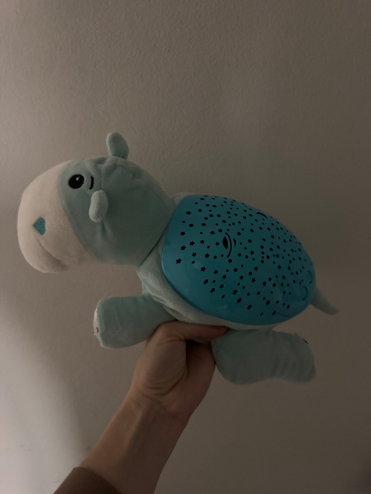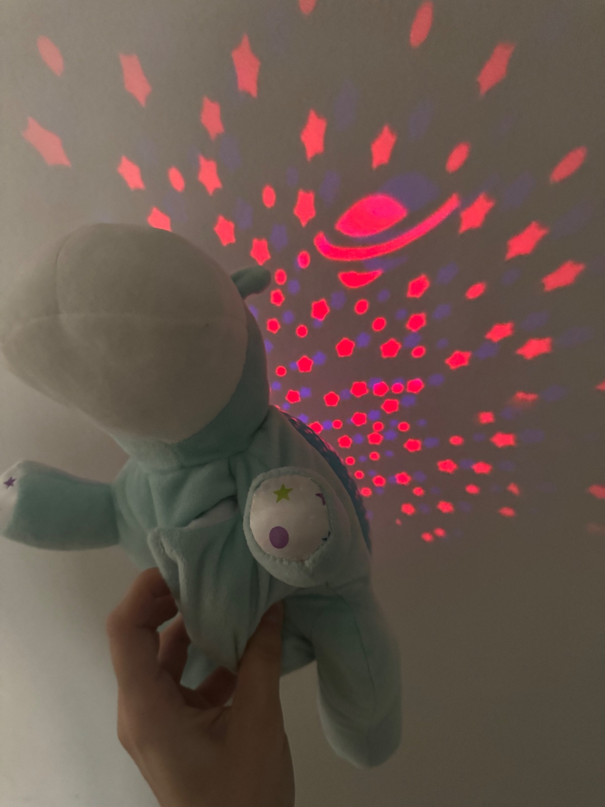 Značka Fisher price. Hrá upokojujúce melódie, bruško sa pohybuje hore dole, lampa svieti, hračka dýcha, bije mu srdiečko. Toto všetko sa dá zvlášť vypínať podľa potreby. Super pomôcka na zaspávani...