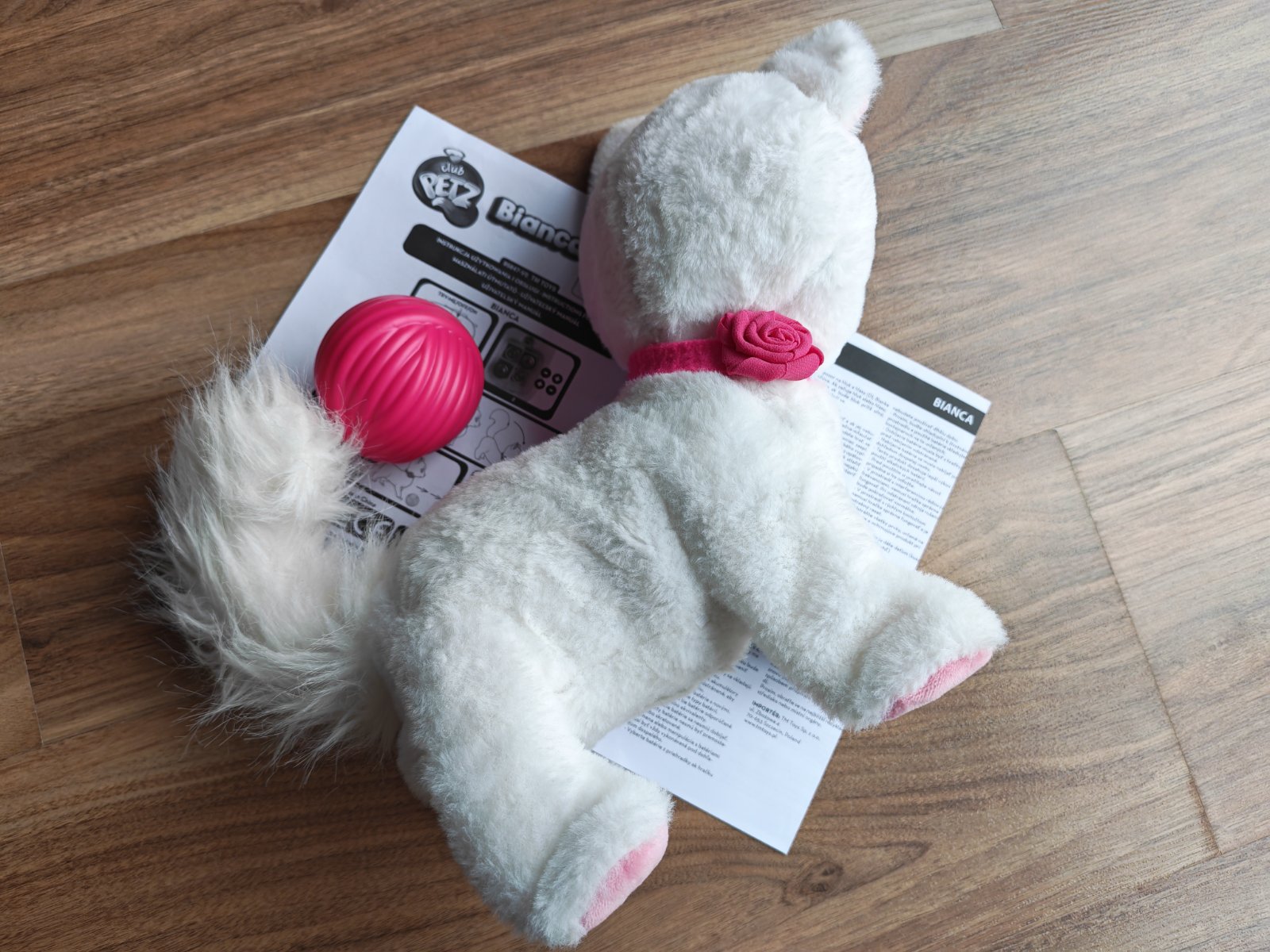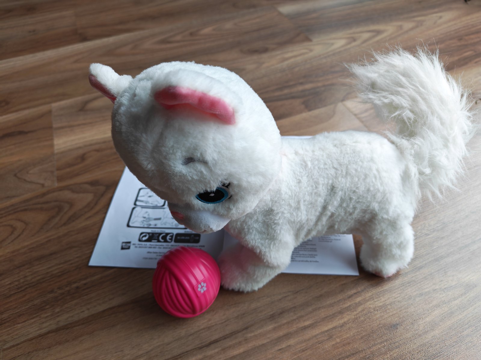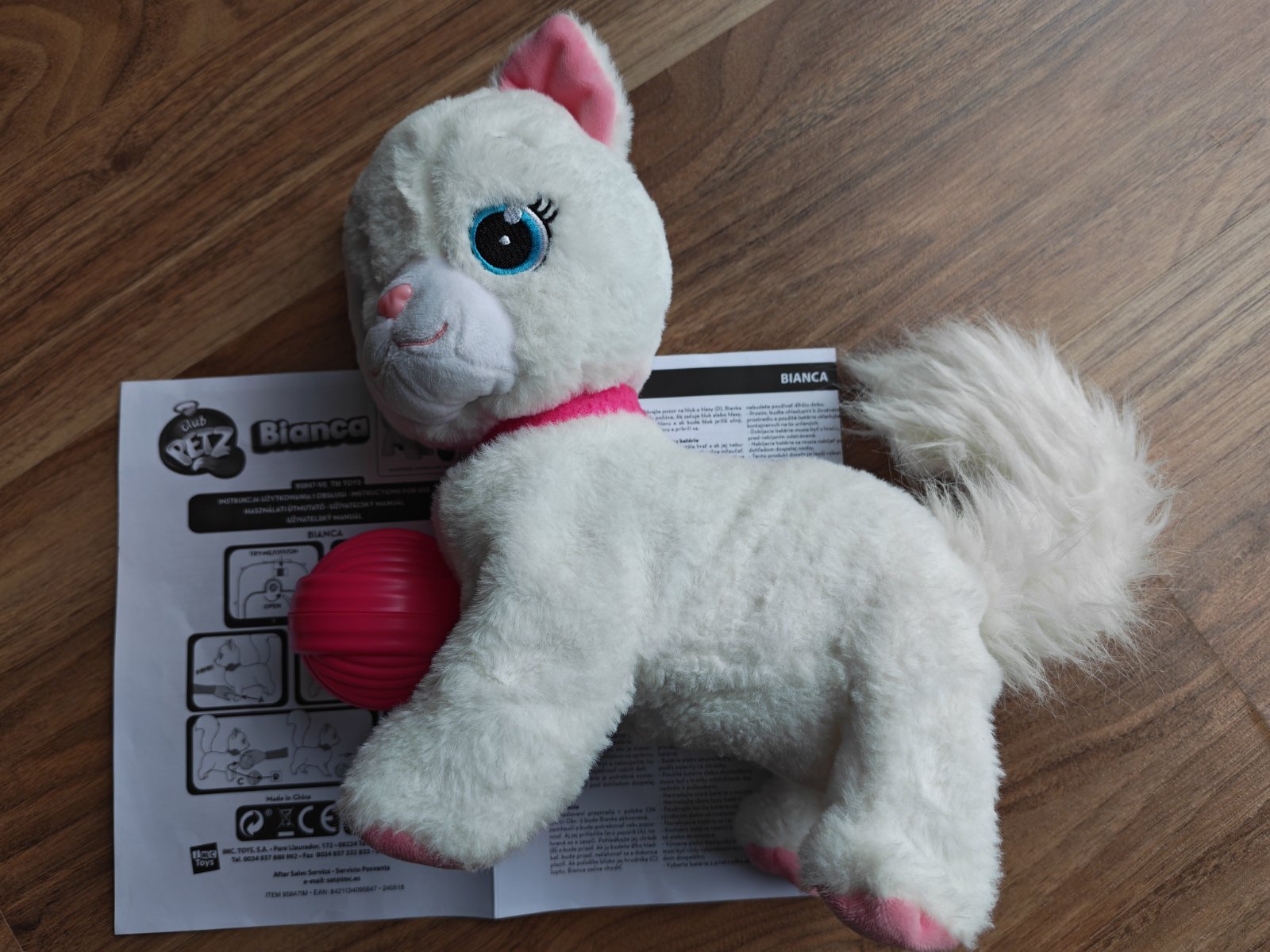 Plyšová Bianca je sladká, mäkká a pôvabná mačička, ktorá sa baví s tebou a jej loptou! Chová sa ako skutočné mačiatko a otáča hlavou, keď ju zavoláte, skrúti sa, keď ju pohnete dozadu. Dávajte si pozor, aby ste sa nedotkli jej nôh... pretože sa jej to nepáči! Bianca prichádza s loptou pradie na hranie, umiestnite ju pred ňu a ona začne chodiť, aby sa mohla hrať! Vždy sa pokúsi upútať vašu pozornosť pohybmi a zvukmi a požiada vás, aby ste sa s ňou hrali a hrali.