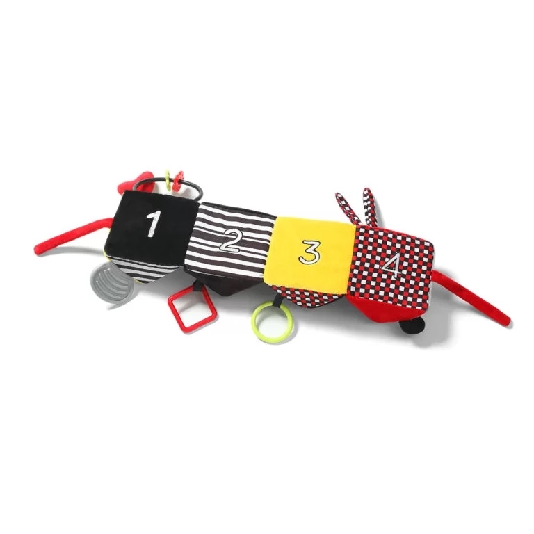 Vzdelávacia plyšová hračka OMNIBUS zabezpečí komplexný rozvoj vášho dieťaťa. Umožňuje získanie nových zručností, od precvičovania úchopu, cez stimuláciu práce ďasien s hryzačkami, až po naučenie počítania a štúdium rôznych priestorových foriem. Hračka je udržiavaná v jasných, kontrastných farbách, ktoré rozvíjajú zmysel pre zrak, predstavivosť a schopnosť sústrediť sa.