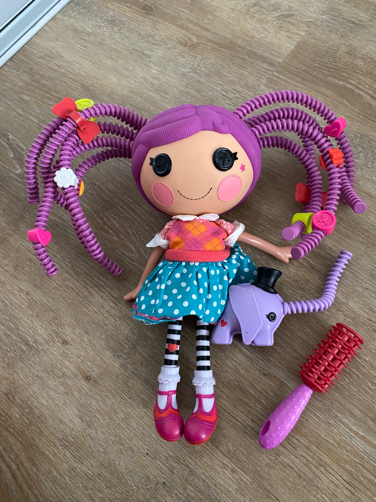Ponúkam krásnu bábiku Lalaloopsy Bláznivé vlasy. Bola občasne hraná, má iné šaty a štipce sú rôzne, no má tam pár naviac. Inak má všetko. Ponúkam viac bábik Lalaloopsy z našej zbierky. Poštovné podľa taríf.