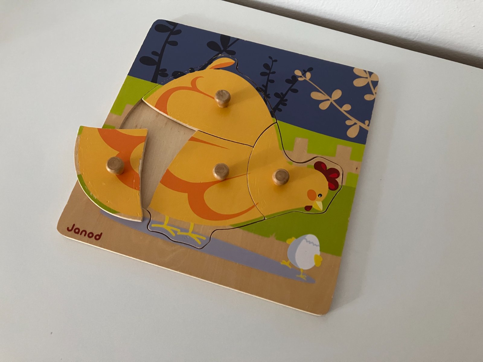Drevená vkladačka s úchytkami - sliepočka