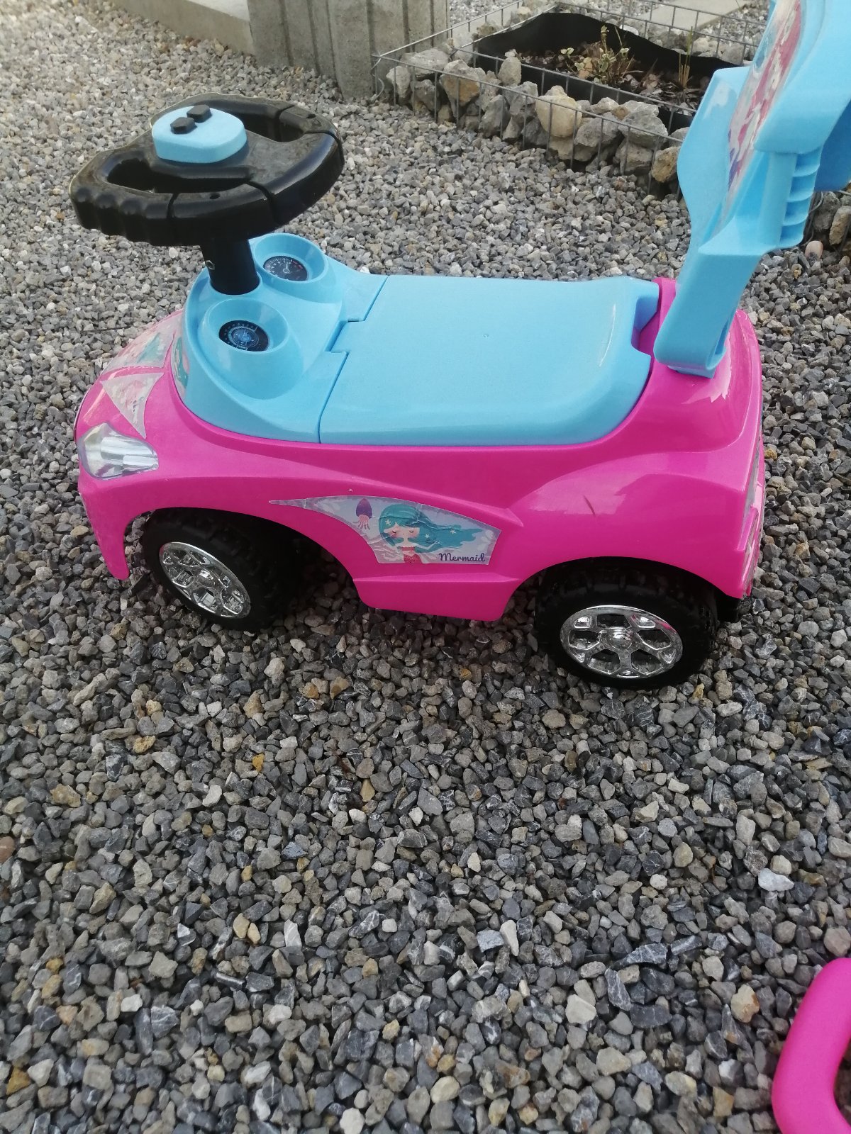 - rozmer: výška po rukoväť 85 cm, výška po sedadlo 23 cm, Jezdítko: dxš 62x38 cm, priemer kolies 14 cm