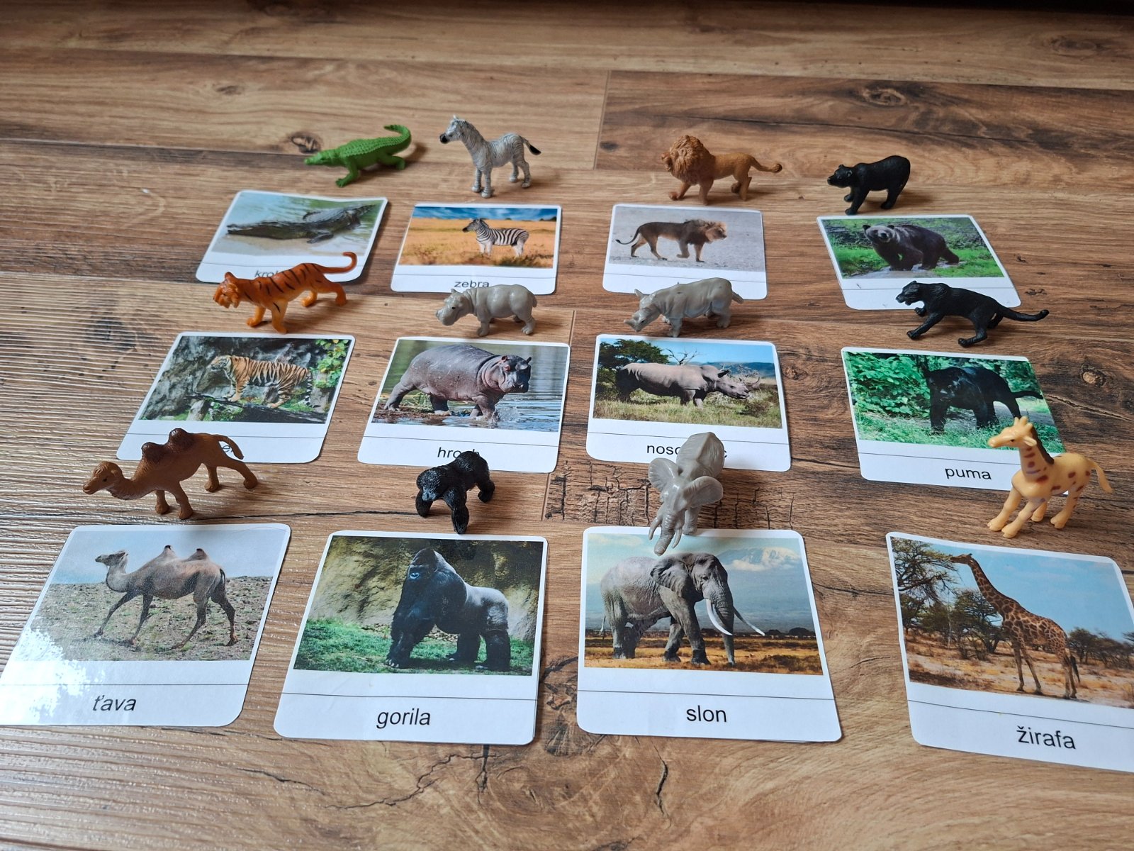 Ponukam kartičky 12ks + zvieratka k nim. Je to skvela zabavka pre male deti ktore su ucia poznavat zvieratka, pomenovat najst na obrazku aj v 3D. U nas velmi oblubene.