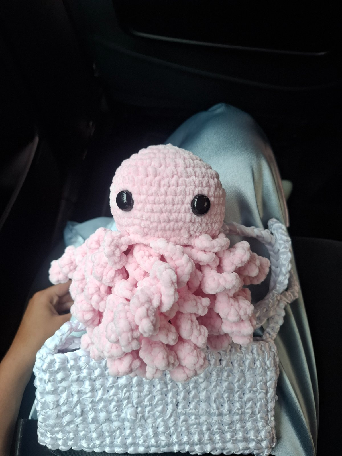 - ponúkam háčkovanú chobotničku, ktorá je skvelým plyšákom pre malé detičky, napríklad do postieľky/kolísky alebo ako darček pre deti