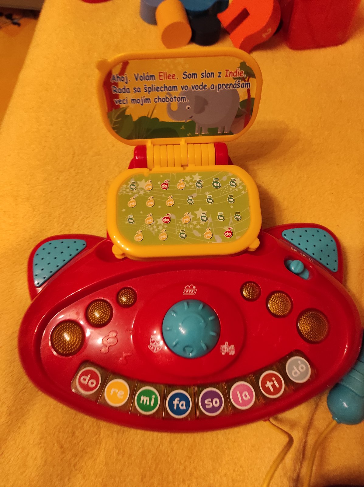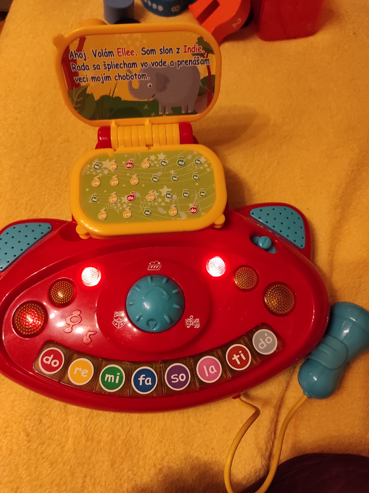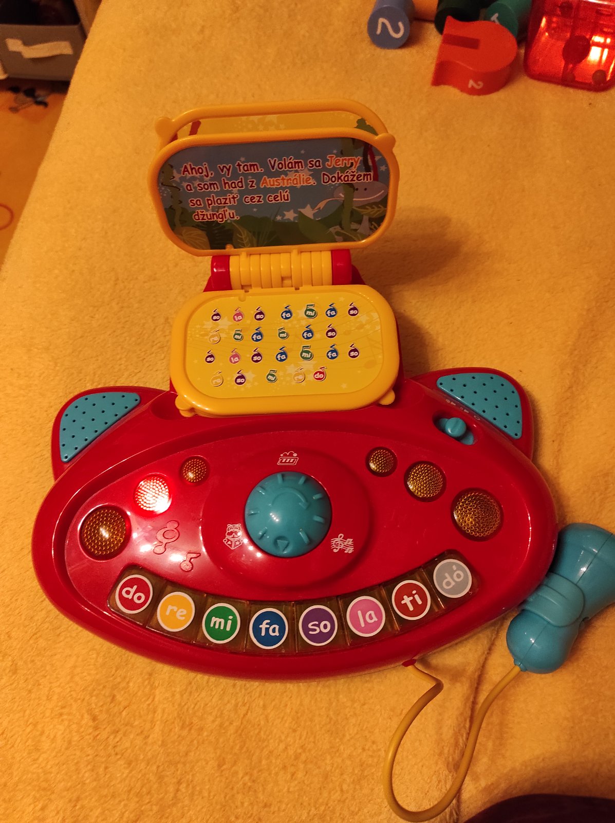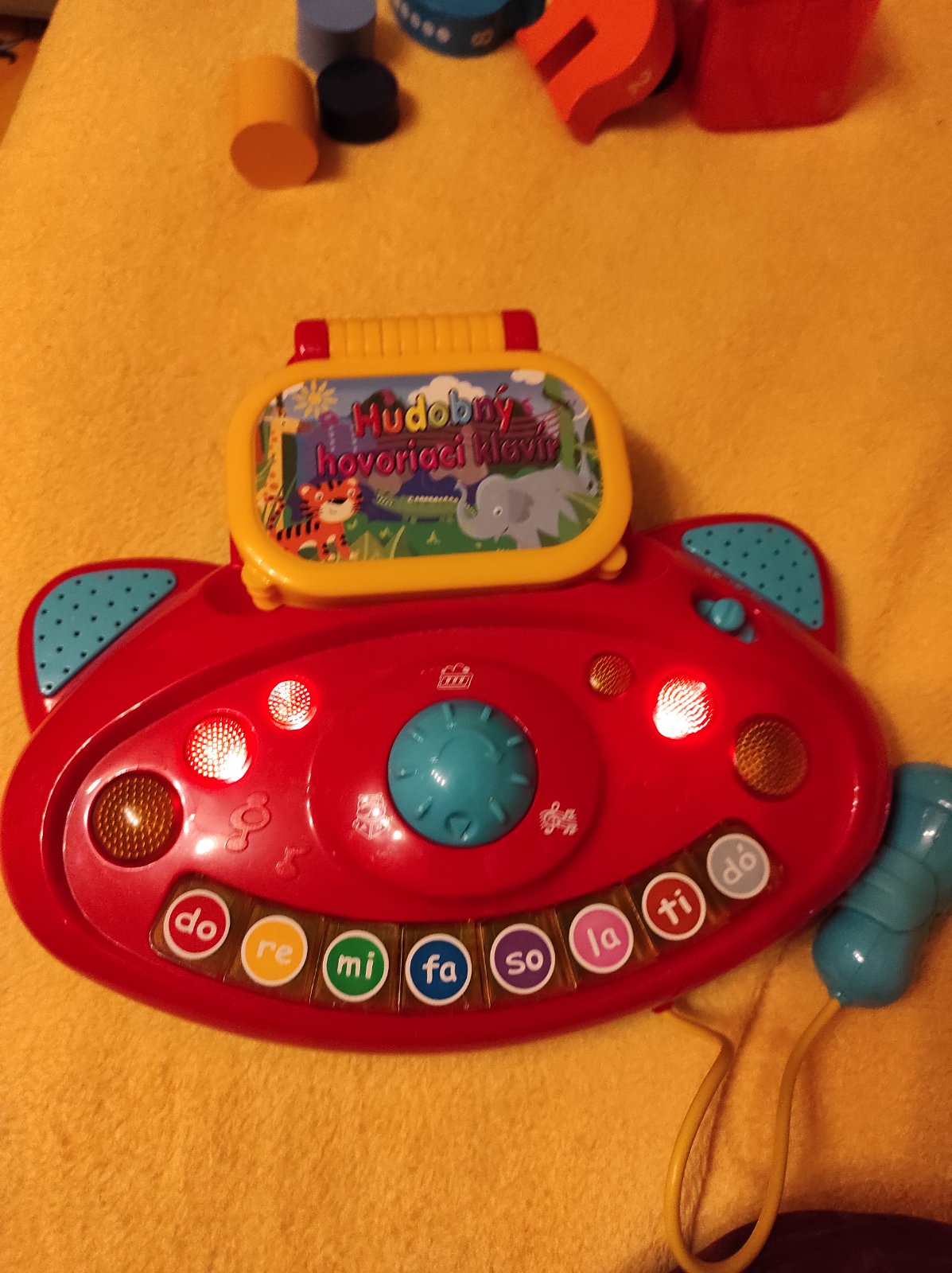 Má tri režimy, ktoré si môže dieťatko zvoliť - buď rozpráva príbehy o zvieratkách, ktoré sú aj súčasťou klavíra (dieťa vidí pred sebou zvieratko, o ktorom je príbeh, sú tam uvedené aj noty s melódiou, takže si tu melódiu môže aj samo zahrat a naučiť sa jednotlivé piesne - je to zrozumiteľné pre dieťa podľa jednotlivých klávesov do - re - mi atd), ďalší režim je hudba, keď klavír hra sám a tretí sú samostatné klávesy. Klavír má pri používaní aj svetelné efekty. V cene zohľadnené, že zvuk už nie je úplne čistý, občas v ňom zachrci ako pri starších reproduktoroch.