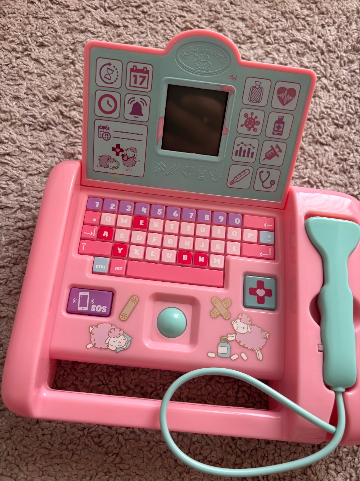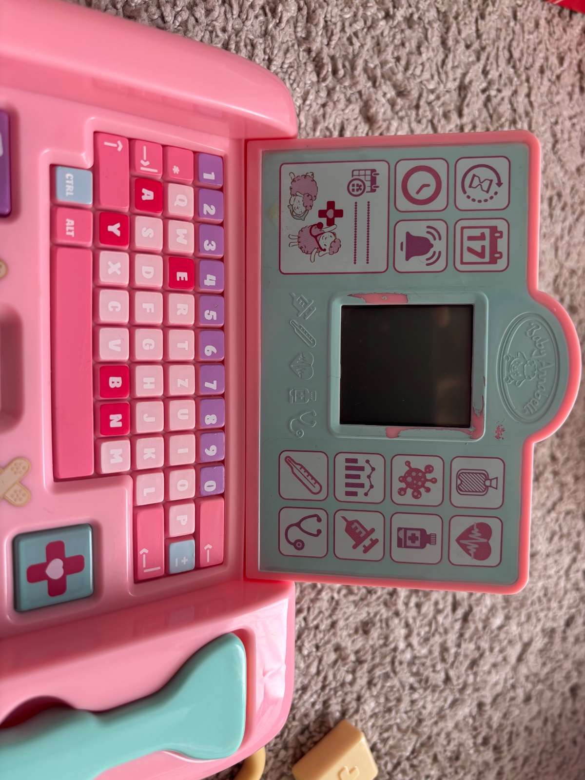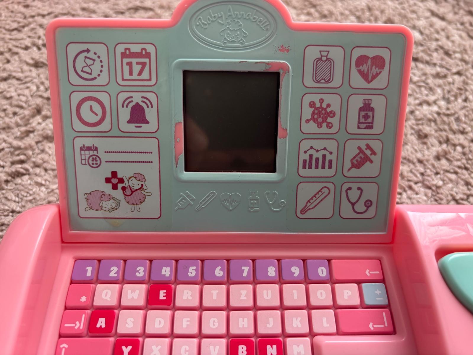 Sem tam je ošúchaná farba, diagnostický prístroj je na baterky a funguje vydáva zvuky, ukáže ako liečiť bábiku, ostatné príslušenstvo len plast