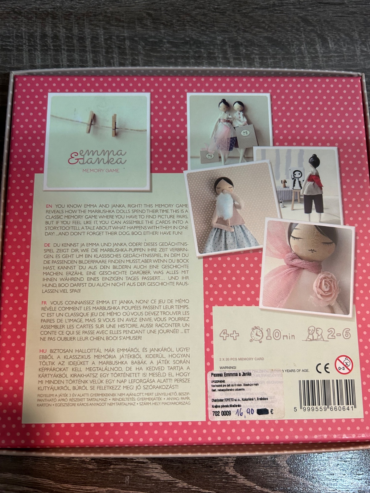 38p3k.Pexeso Emmma a Janka je klasická nadčasová spoločenská hra, ktorá zabaví malých aj veľkých. Zvíťazí v nej ten, komu pamäť slúži najlepšie! Hra však stimuluje aj rozvoj ďalších kognitívnych schopností, ale tiež jemnú motoriku.