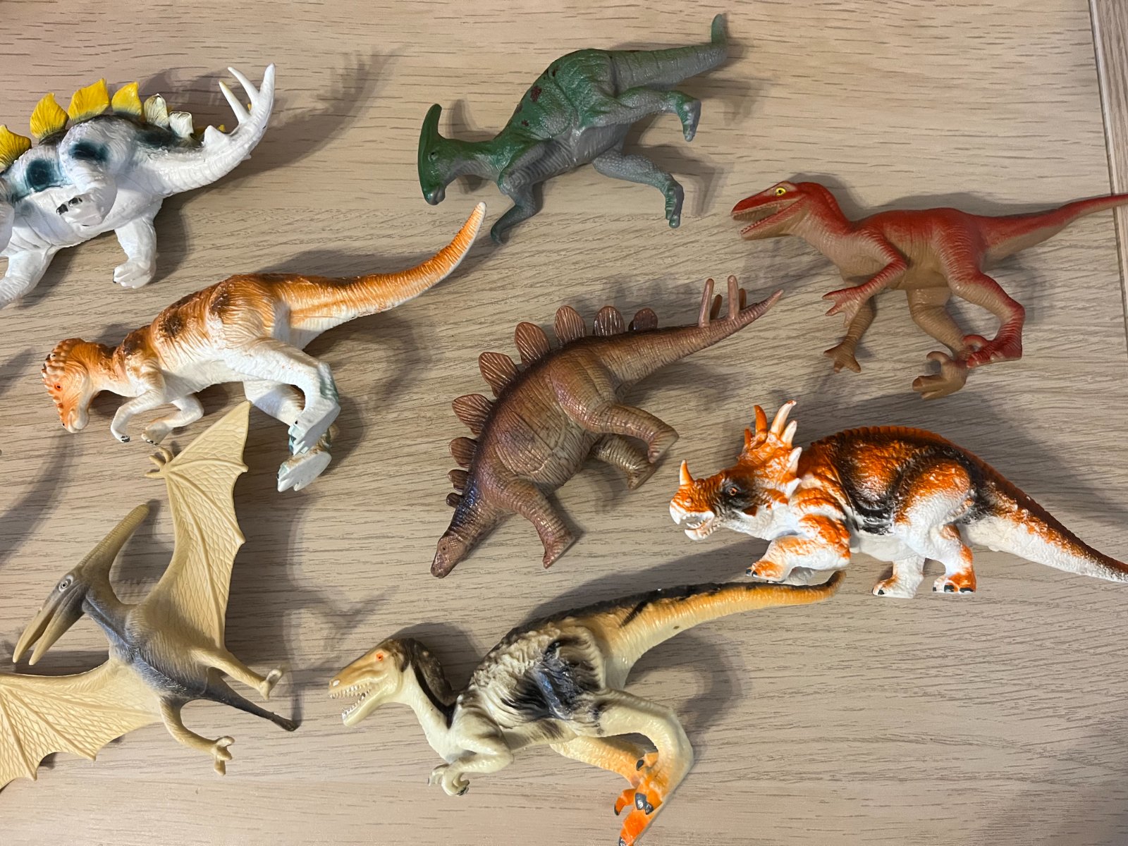 Predám veľmi pekný set 11 dinosaurov vo veľmi peknom hranom stave. Dva z dinosaurov nestoja samostatne, pravdepodobne kvôli uskladneniu keďže majú jemne poohýbané nohy. Inak sú všetky figúrky bez poškodenia a vhodné na ďalšie hranie alebo zberateľské účely. Ideálna ponuka pre milovníkov praveku a dinosaurov! Plus poštovné.