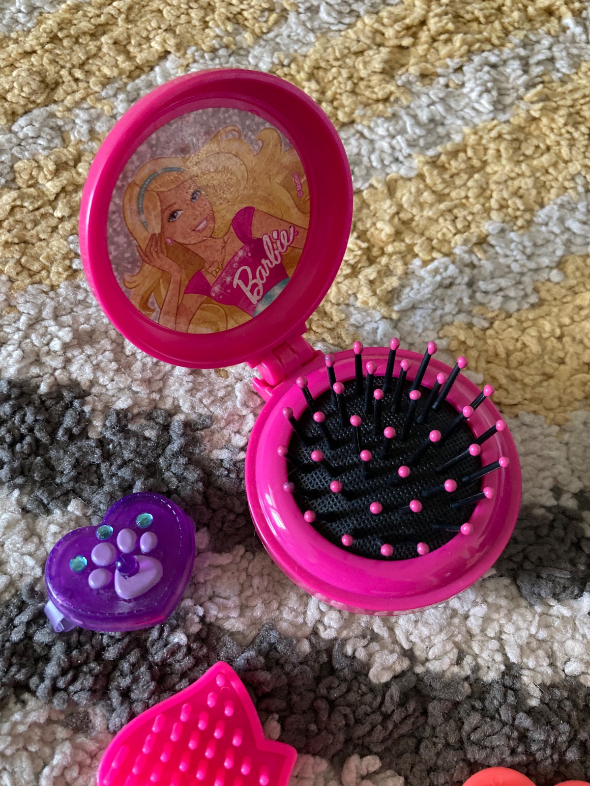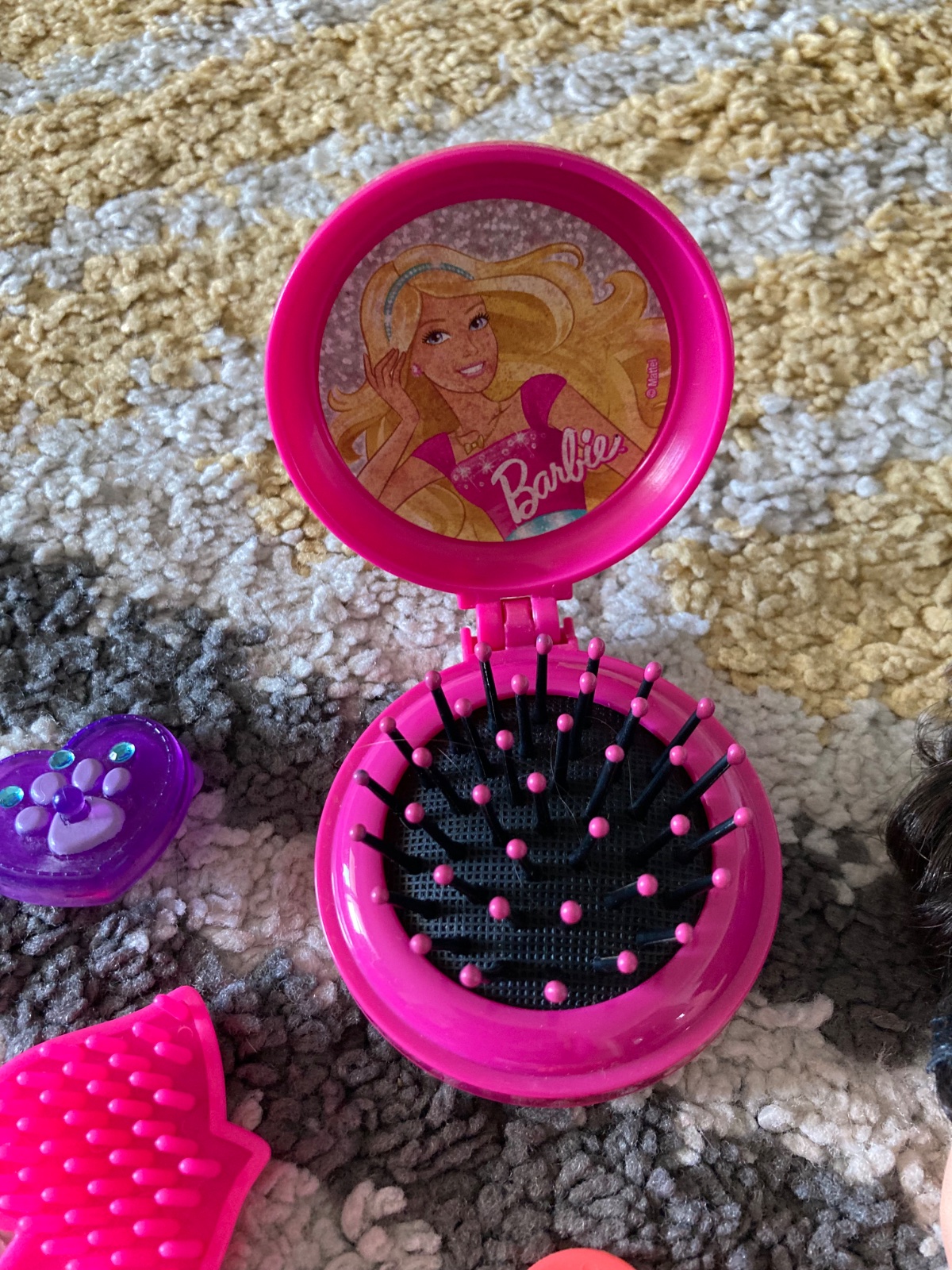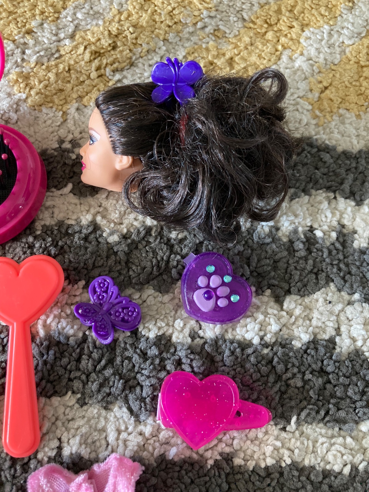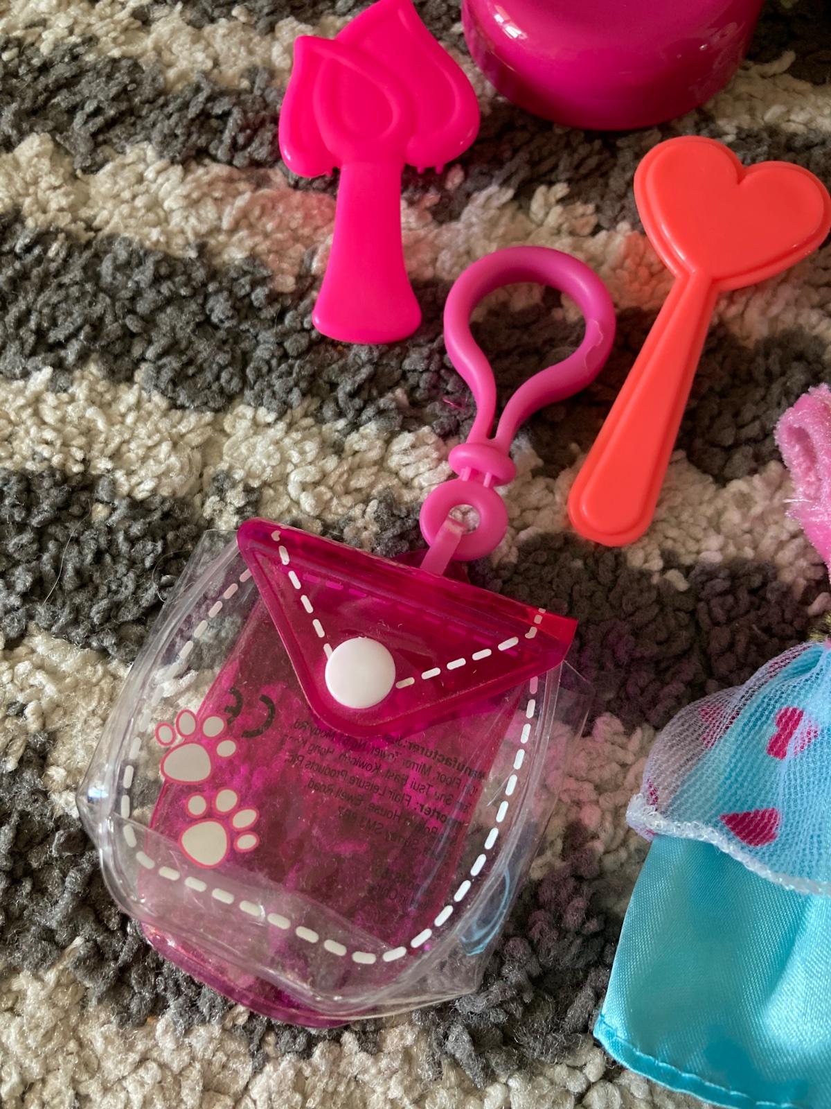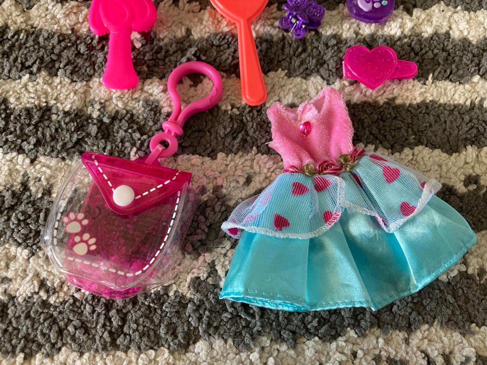 šaty, hlava Barbie na česanie, prívesok na doplnky, kefy na vlasy a sponky