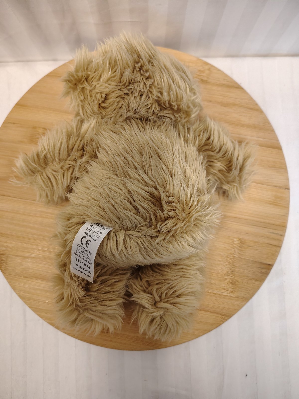 Plyšový chlpatý hnedý medveď s mašlou, M&S, 26 cm