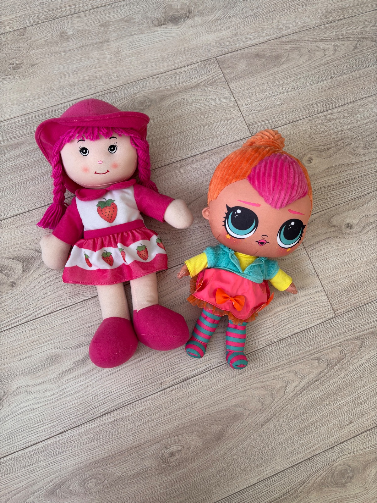 Mix plyšákov, ružová bábika gratis. Všetko spolu 13€ plus poštovné