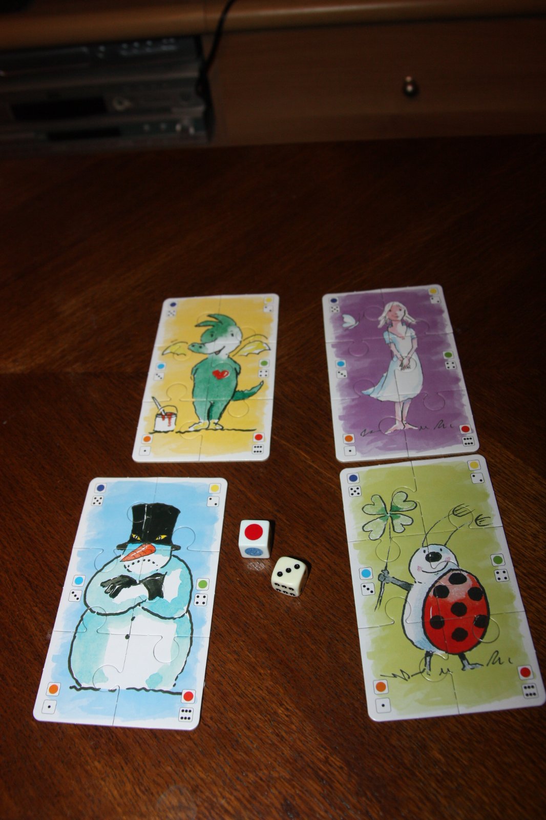 Spoločenská hra pre 2- 4 hráčov od 3 do 8 rokov. Každý hráč skladá svoj obrázok podľa toho, aké dieliky získa po hode kockou. Vyhráva ten, kto ho ako prvý zloží .