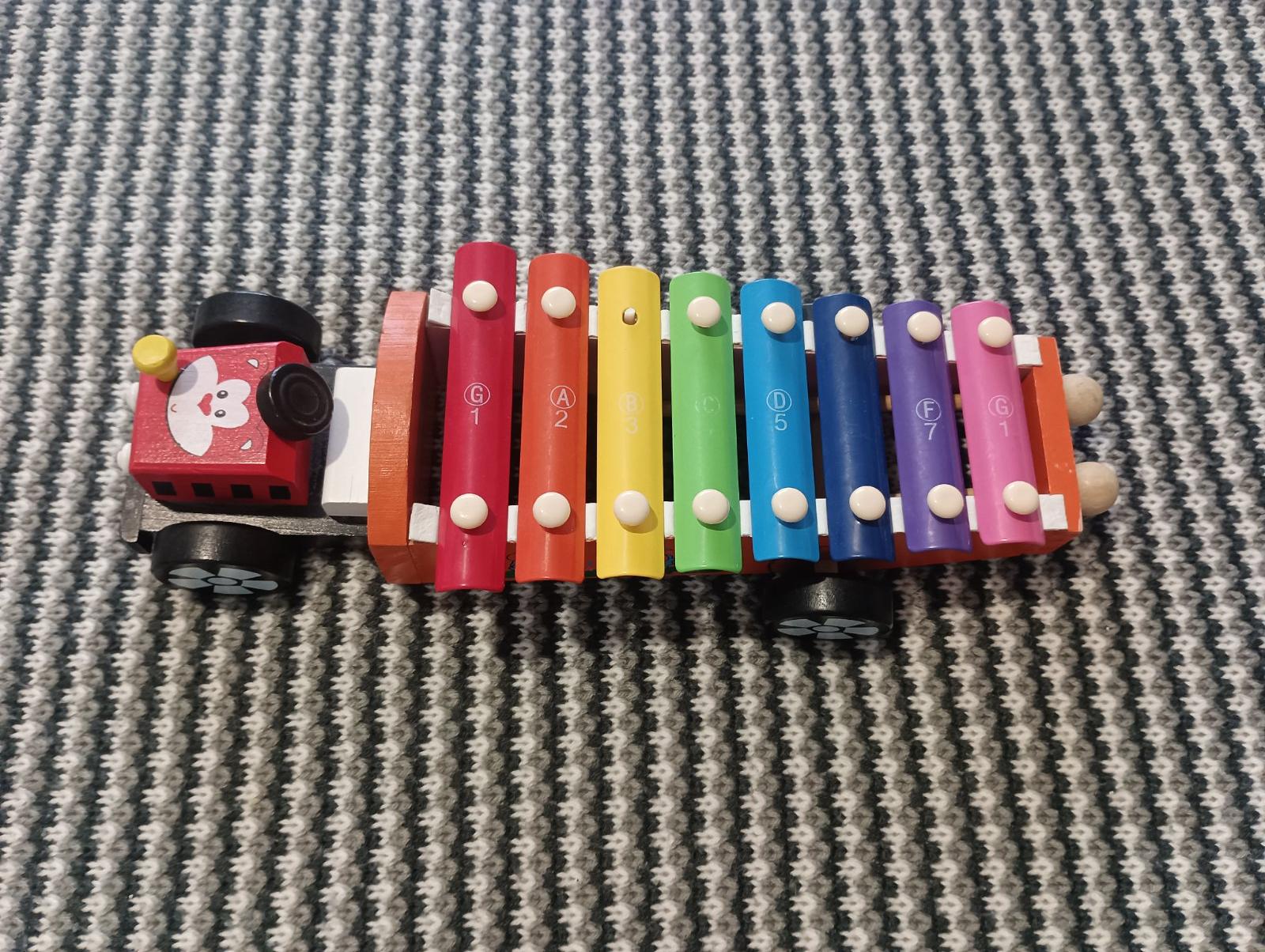Predám xylofón. Žltý pásik má jednu časť odlomenú. Je to vidno na foto. Na funkčnosť to nemá vplyv.