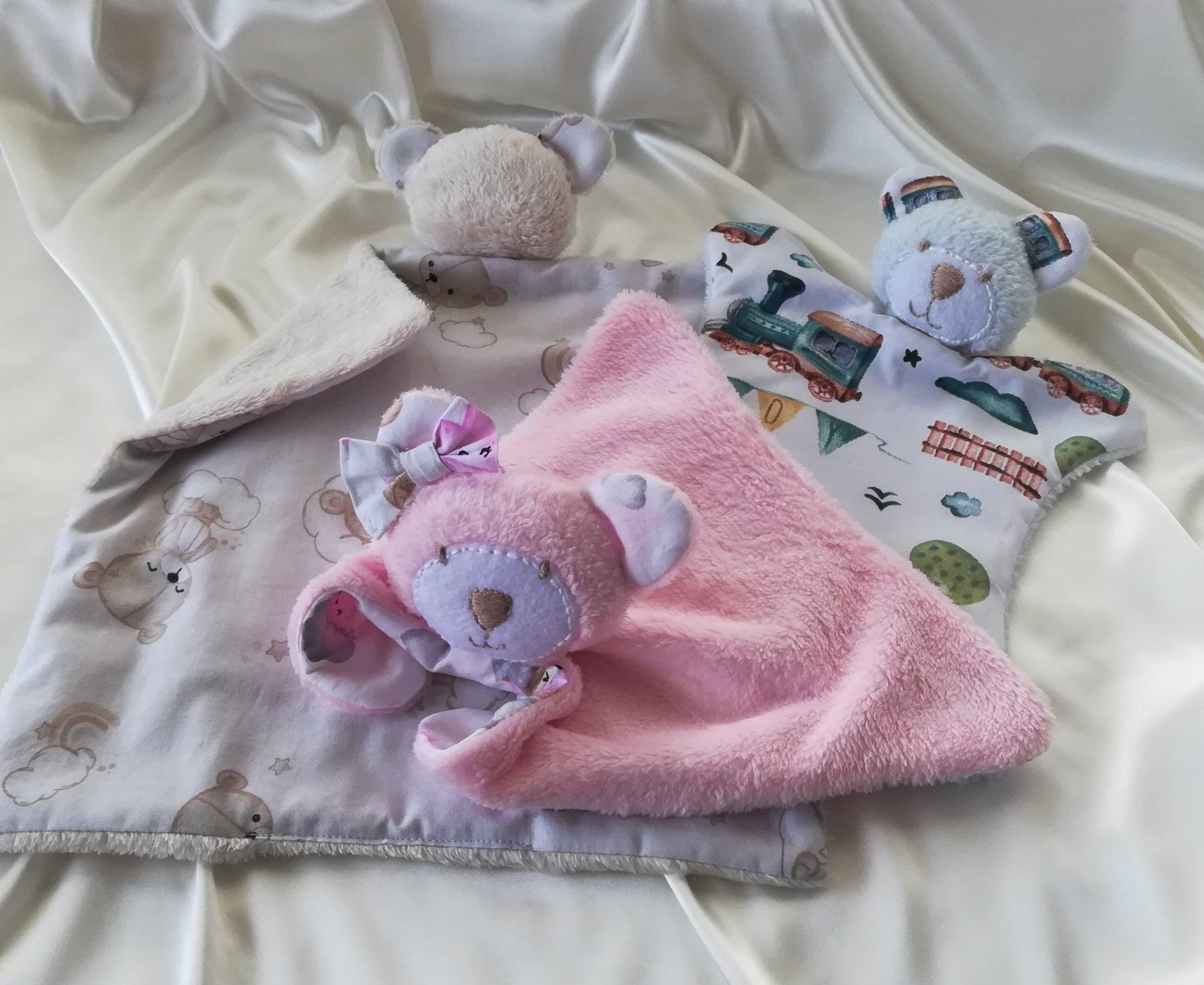 🔸Výbavičky/ setíky pre bábiky do postieľky/ kočíka- setík môže obsahovať vankúšik s výplňou, deka jedna strana je bavlnená látka, druhá minky látka, zavinočka s výpľňou, zapínaním na suchý zips alebo aj na zaväzovanie, taktiež vankúšik a zavinočka môžu byť s volánikom