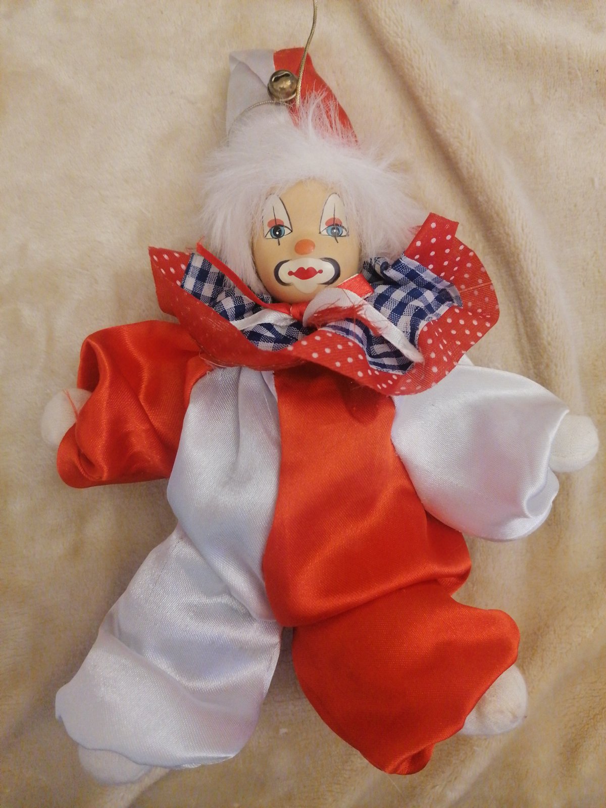 Gašparko, keramicka tvárička, satenove oblečenie