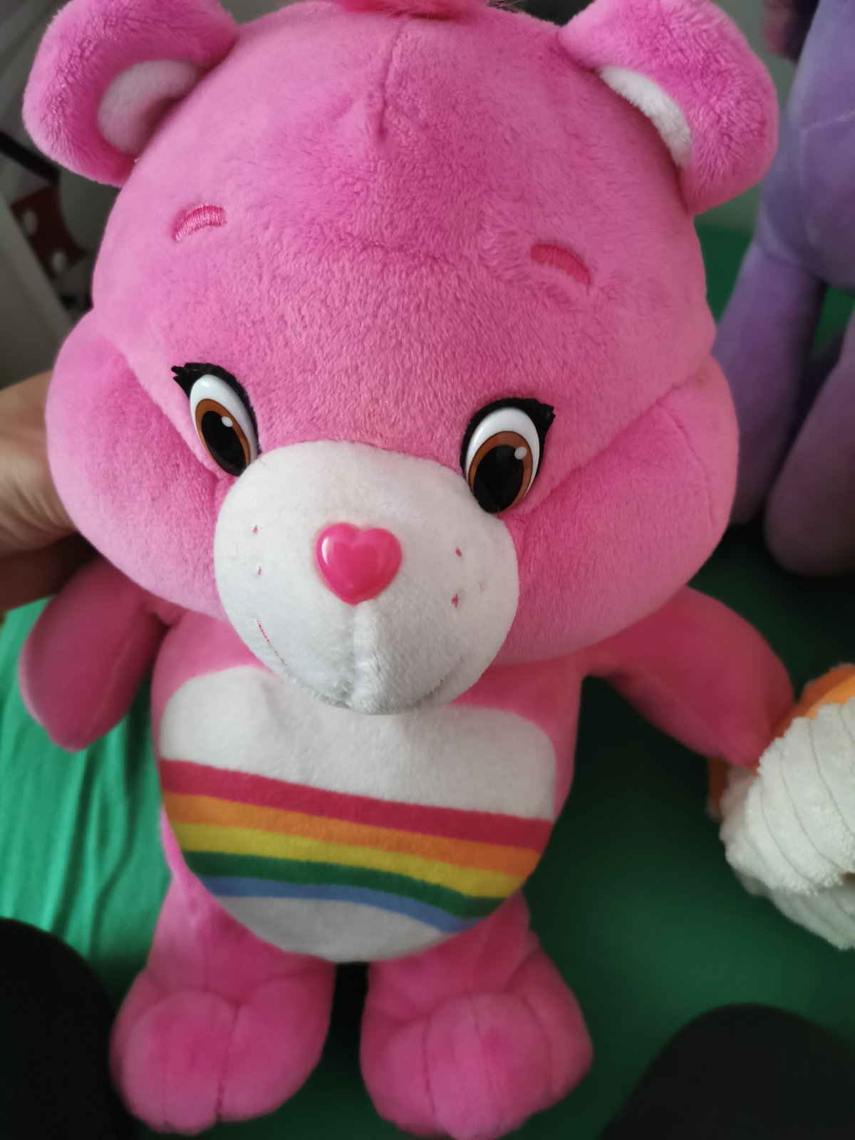 Krásny plyšový macko, ktorý funguje na batérie. Po stlačení bruška sa smeje. Macko je bez poškodenia,vhodný aj ako darček.V
