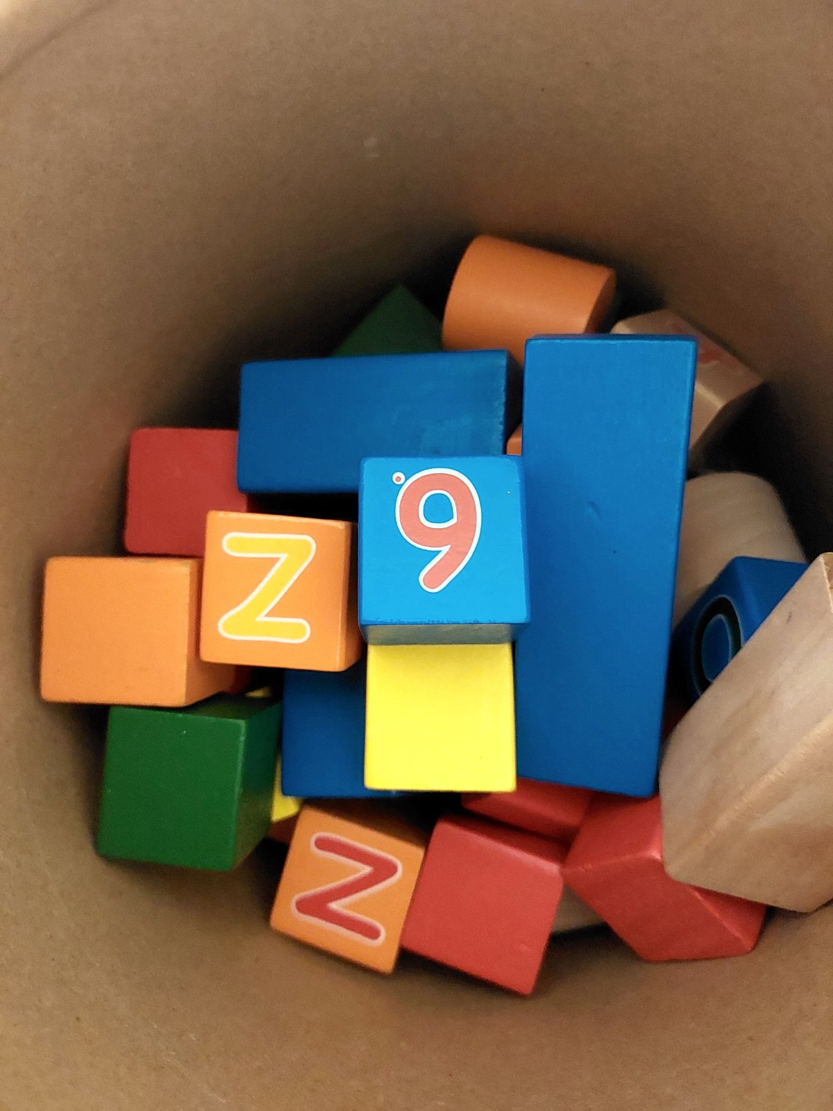 Drevené farebné kocky s pismenami a cislami
