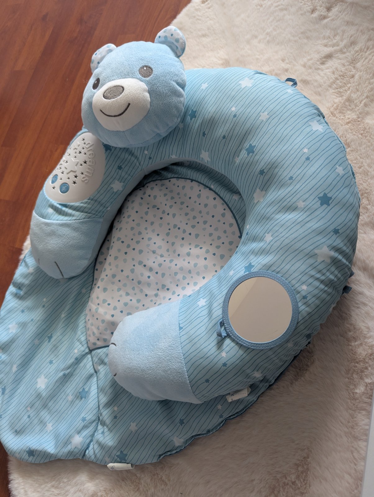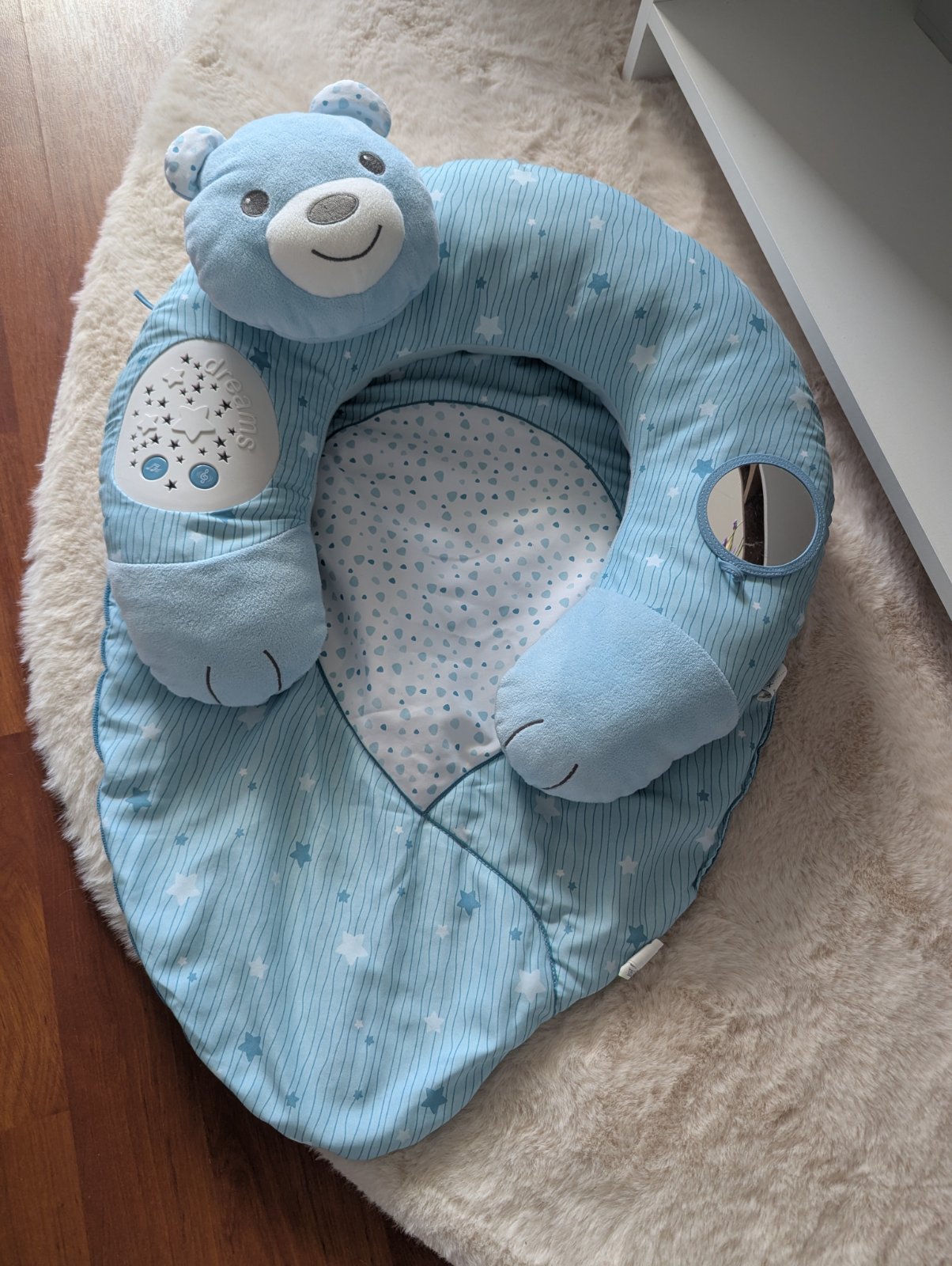 Hracia podložka s opierkou pre bábätko, je ako nová bez poškodenia. Len už k nej nemám hrkálku. Podložka je vhodná od 0m+ no my sme ju využívali od 3m+ (no tým, že máme toho viac tak bol na nej cca 5x). Opierka má v sebe melódie a svieti.