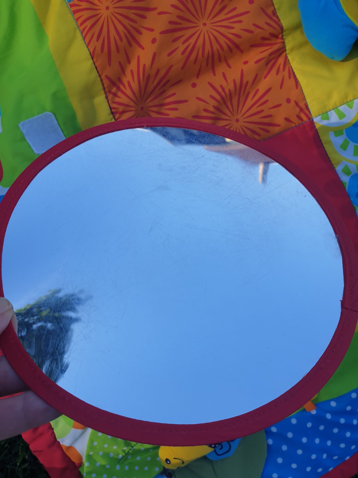 Včielka, zrkadielko a to modré hudobné v strede sa dá odlepiť z deky..ľahko prenosná