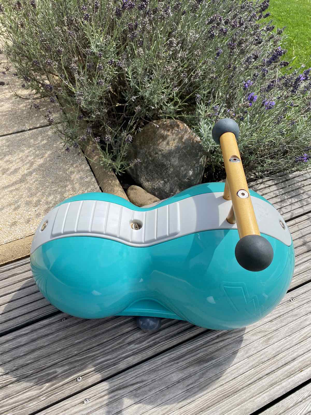 Odrážadlo podporuje rozvoj pohybových zručností najmenších, namiesto klasických koliesok má na podvozku 2 gule, ktoré umožňujú bezpečný pohyb aj pre maličké deti, podporuje koordináciu ich motorických zručností a zmyslov. V porovnaní s klasickým odrážadlom, gule na podvozku poskytujú stabilnejšiu základňu. nižšie gravitačné centrum a nižšiu rýchlosť, keby dieťa stratilo rovnováhu.