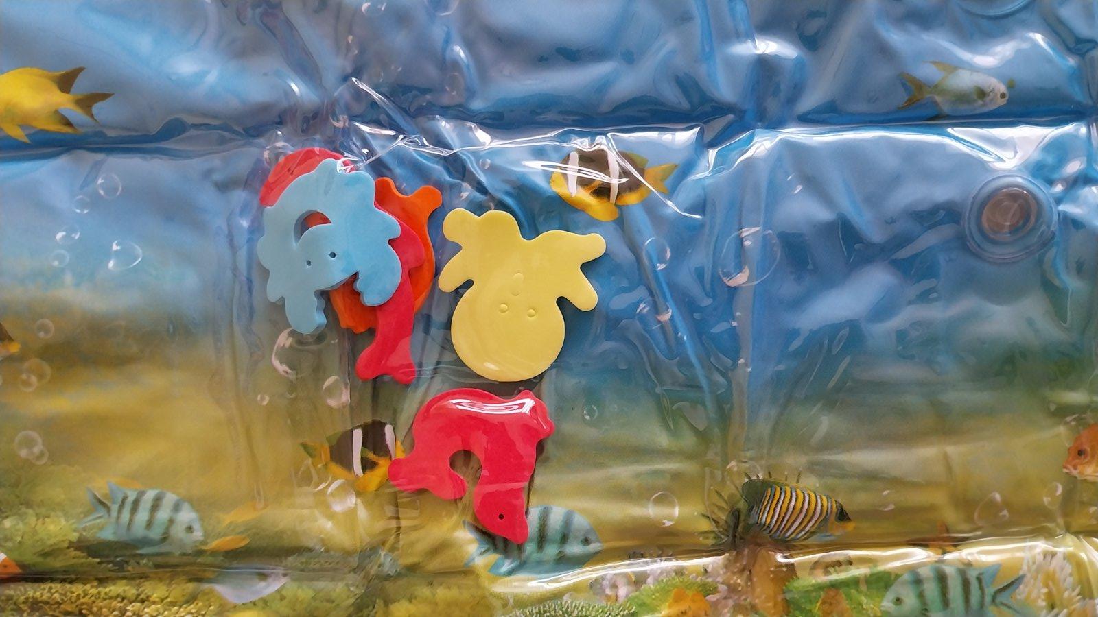Vodná podložka pre bábätka. Kreatívna podložka s plávajúcimi zvieratkami. Viac popisu v texte obrázka. My sme ju mali len nafúknutú vzduchom.
