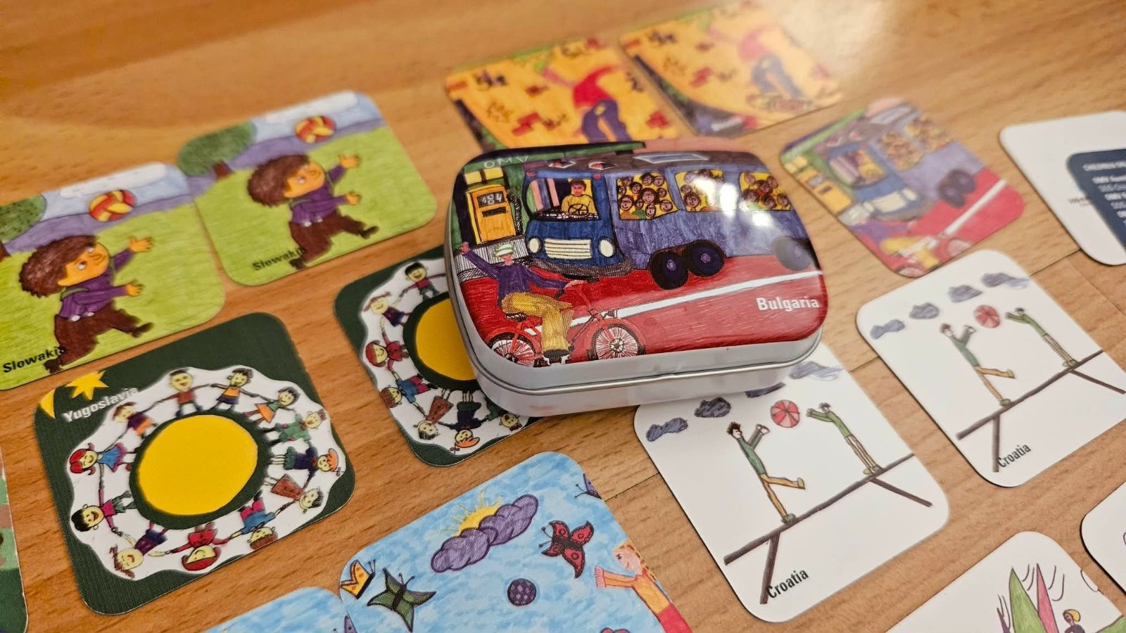 top stav, 12 parov (24 karticiek), rozmer karticky: 4x4 cm, rozmer plechovej krabicky: 5x6 cm