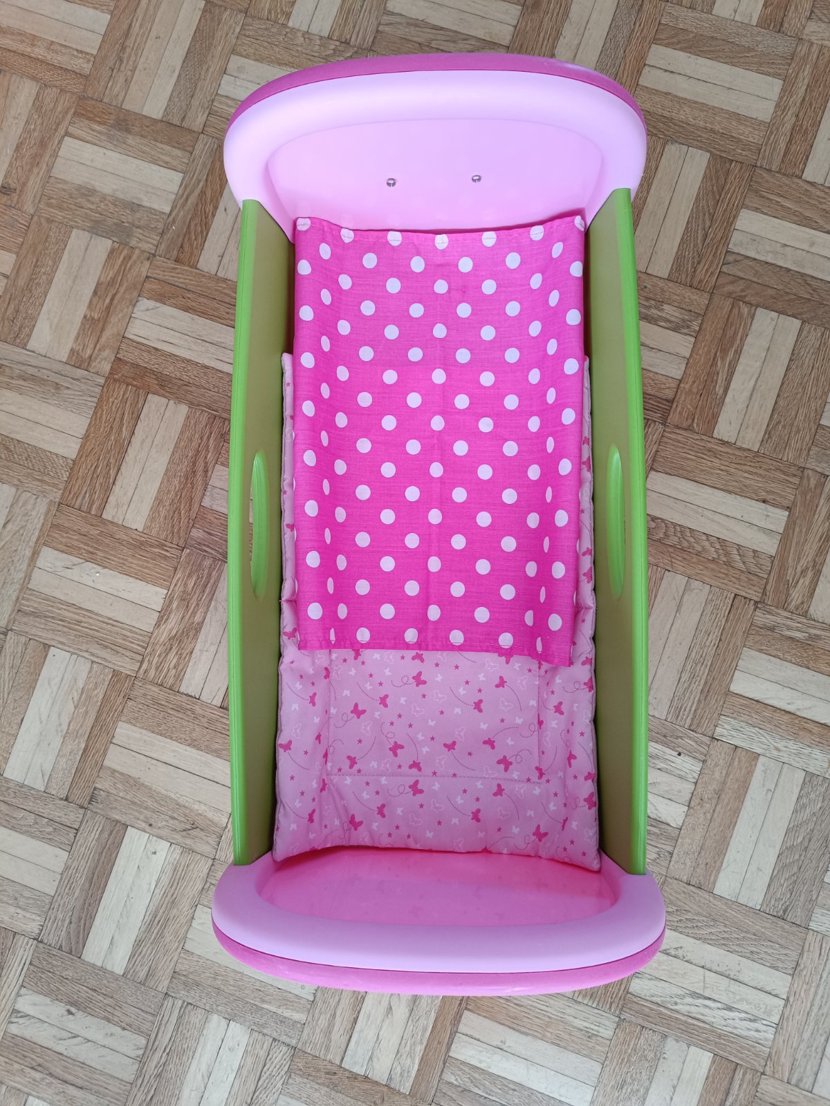 Posunieme ďalej túto kolísku pre bábiky. V peknom hranom stave. Nájdu sa na plaste škrabančeky. Pôvodná cena cca 38 EUR. Ideálny by bol osobný odber Prešov vzhľadom na rozmer . Prípadne Packeta po zaslaní kódu.