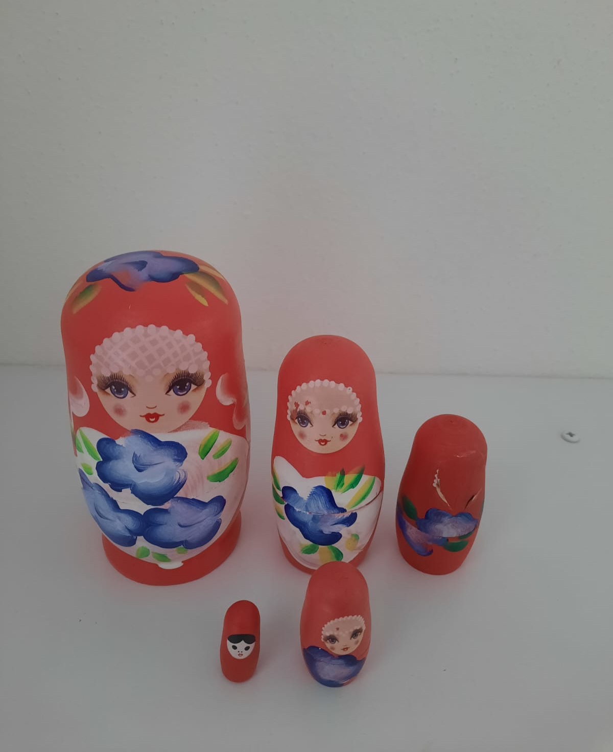 Matriošky ručne malované, jedna nemá tvár, inak super stav.