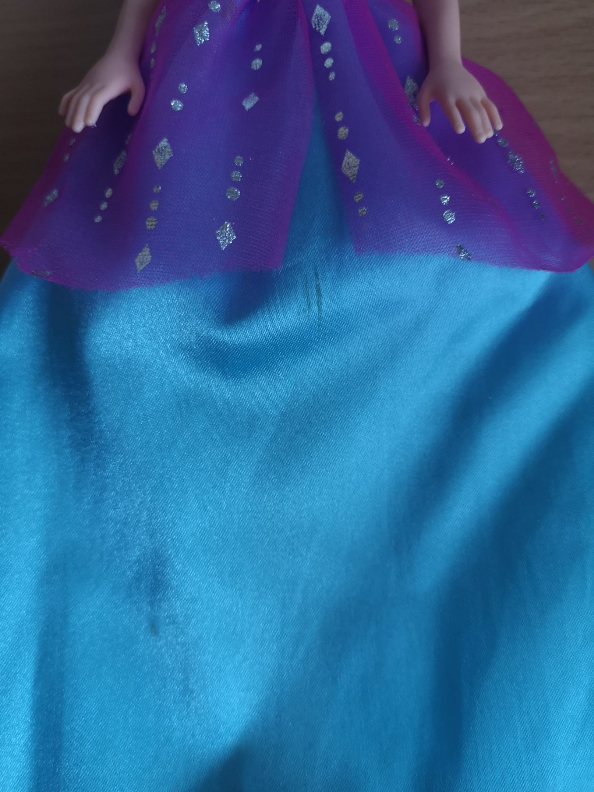 Babika je málo hraná, vo veľmi dobrom stave. Vpredu na šatách sú 2 malé fliačiky (1 pásik a 1 bodka - viď. posledná fotka). Neskúšala som ho vyprať.