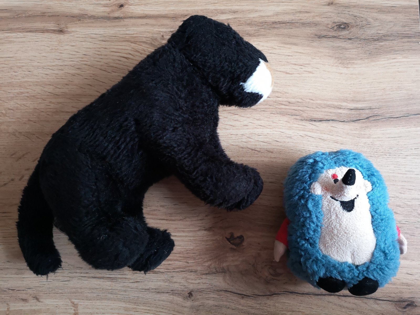 Veľkosť: ježko cca 12cm, psík čierny cca 20cm, s chvostom cca 27cm