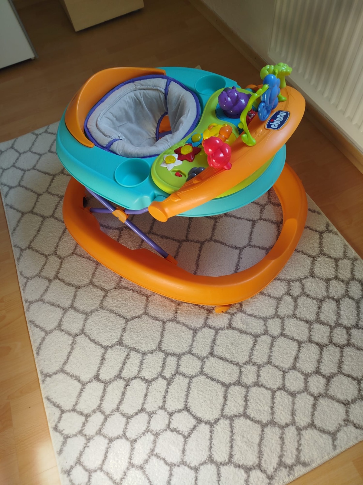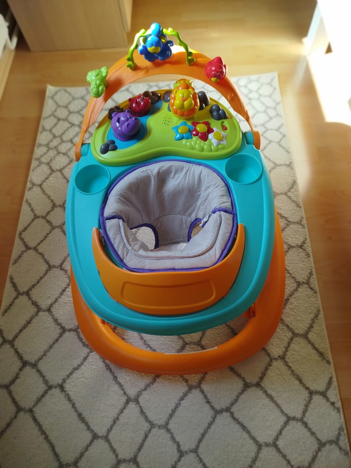 Chodítko je ľahkej plastovej konštrukcie v celku. Predné kolieska sú otočné,zadné sú gumené,chrániace podlahy(už žiadne ryhy). 3 stupňová regulovateľná výška sedenia 6 bŕzd Hracia doska s hračkami ...