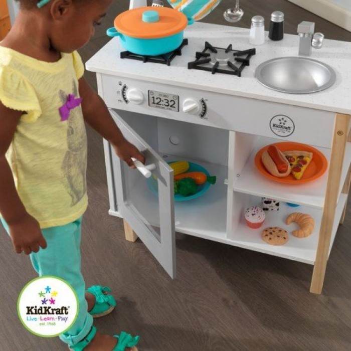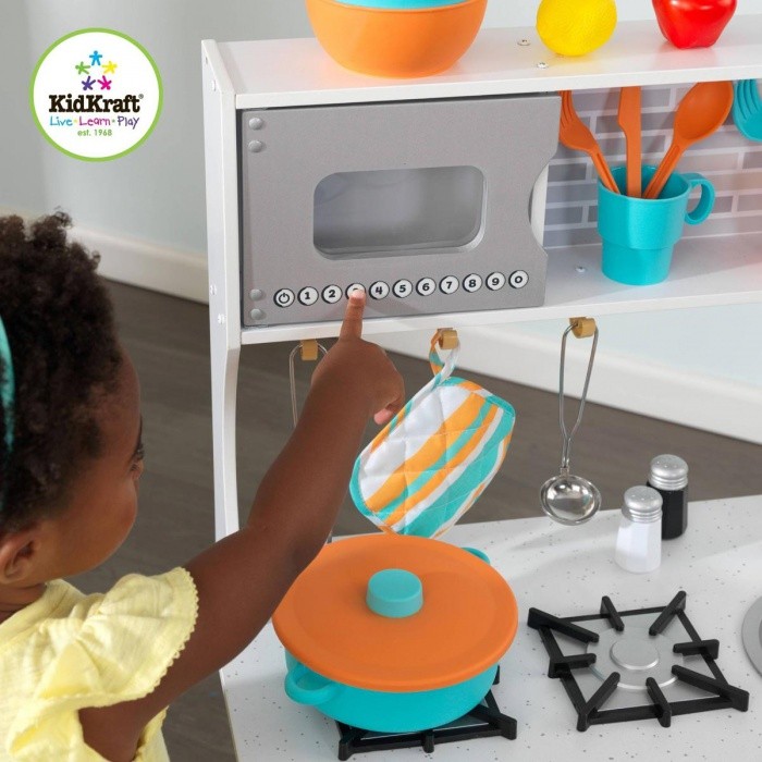 S touto detskou kuchynkou od KidKraft bude varenie skutočná zábava! All time play Kuchynská linka s príslušenstvom je ideálna pre malé kuchárky ktoré ju budú zaručene milovať. Táto drevená kuchynka je robustná a navrhnutá tak, aby vydržala roky. Rodičia budú milovať vďaka priestoru na ukladanie , ktorý pomáha udržať poriadok.