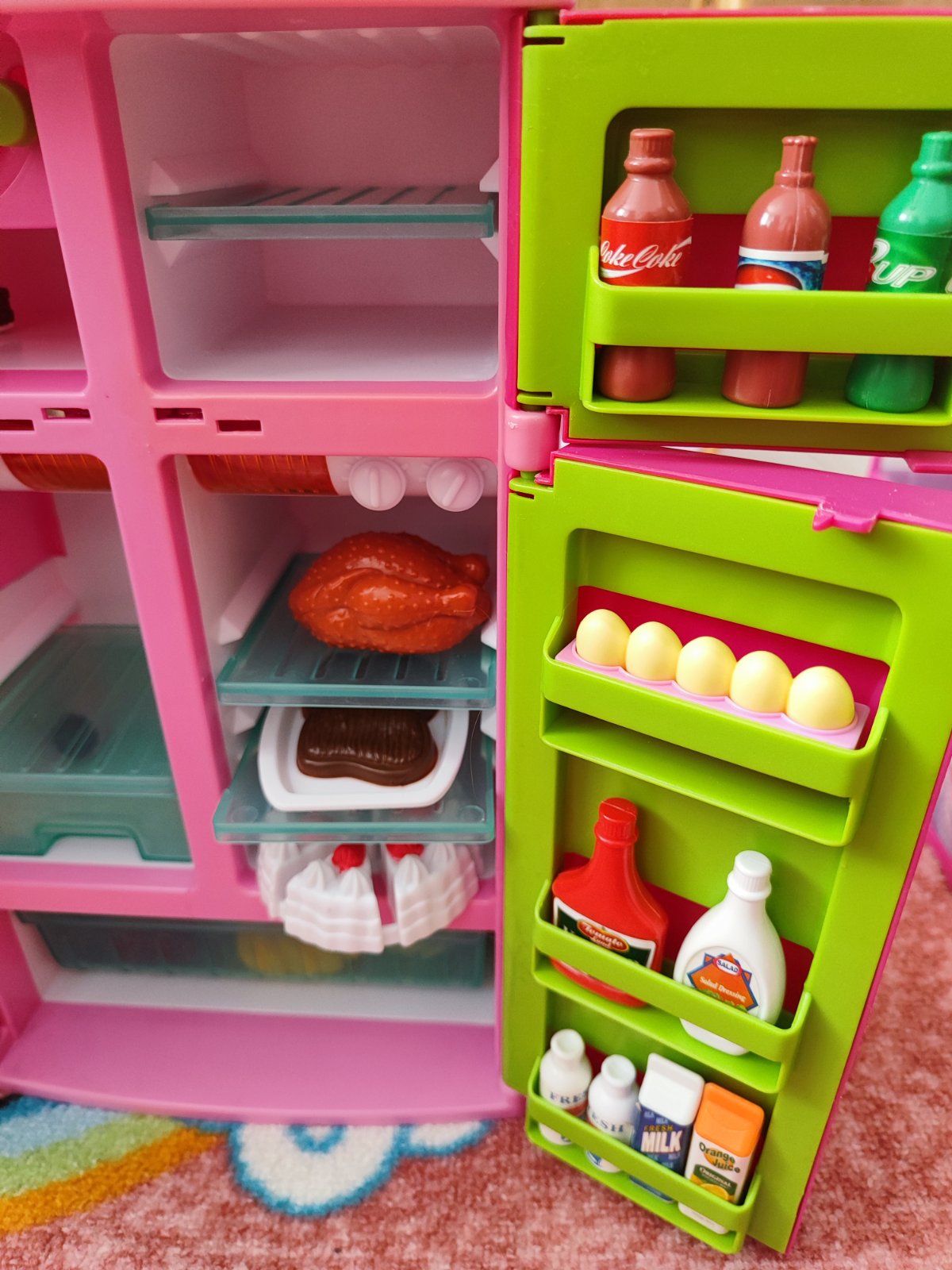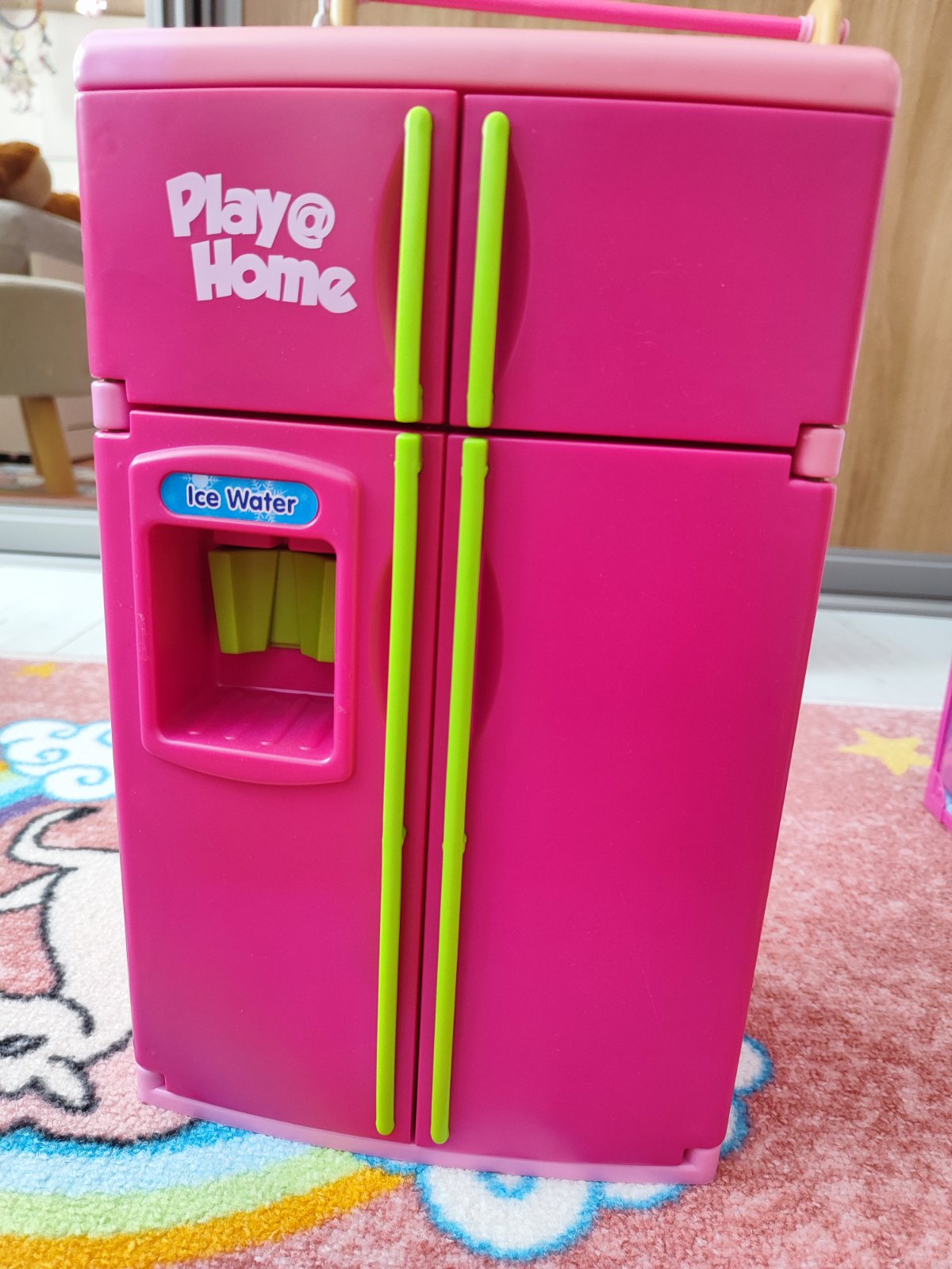 Krásna moderná chladnička ako doplnok pre bábiky. Vydáva aj zvuky stekajucej vody pri čapovani nápoja.