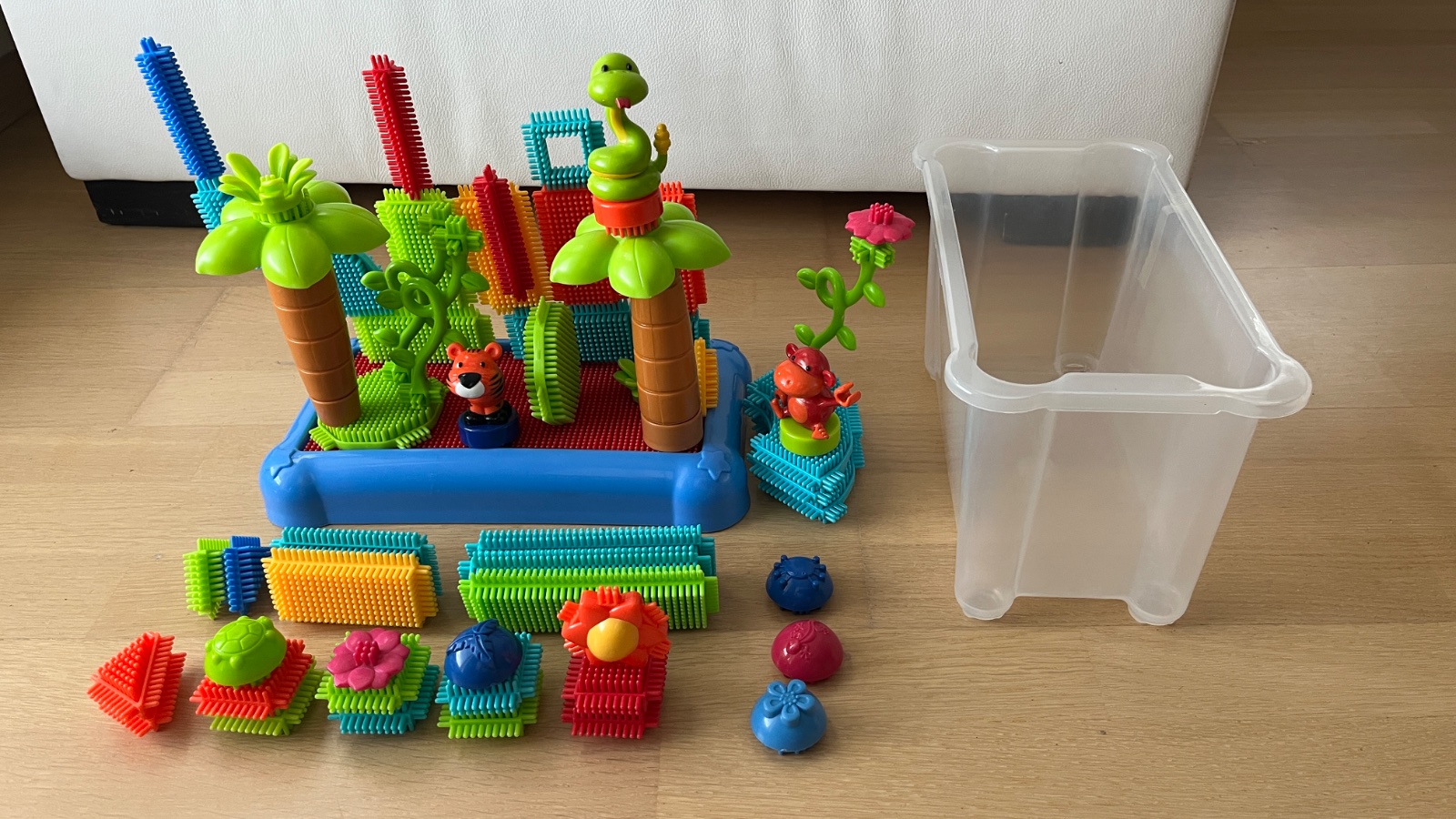 Stavebnica “pichľavé kocky” rozvíja kreativitu a zároveň umožňuje vytvoriť pekné prostredie “džungle”. Rozvíja kreativitu a jemnú motoriku.Súčasťou je aj stavebná podložka a úložný box.