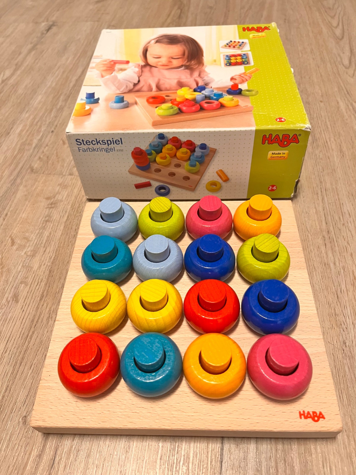 Predám krásnu hračku vkladačka - farby. Je to krásna hračka,okrem učenia farieb si dieťa vie postaviť aj napr. vežu. Cena 15.-