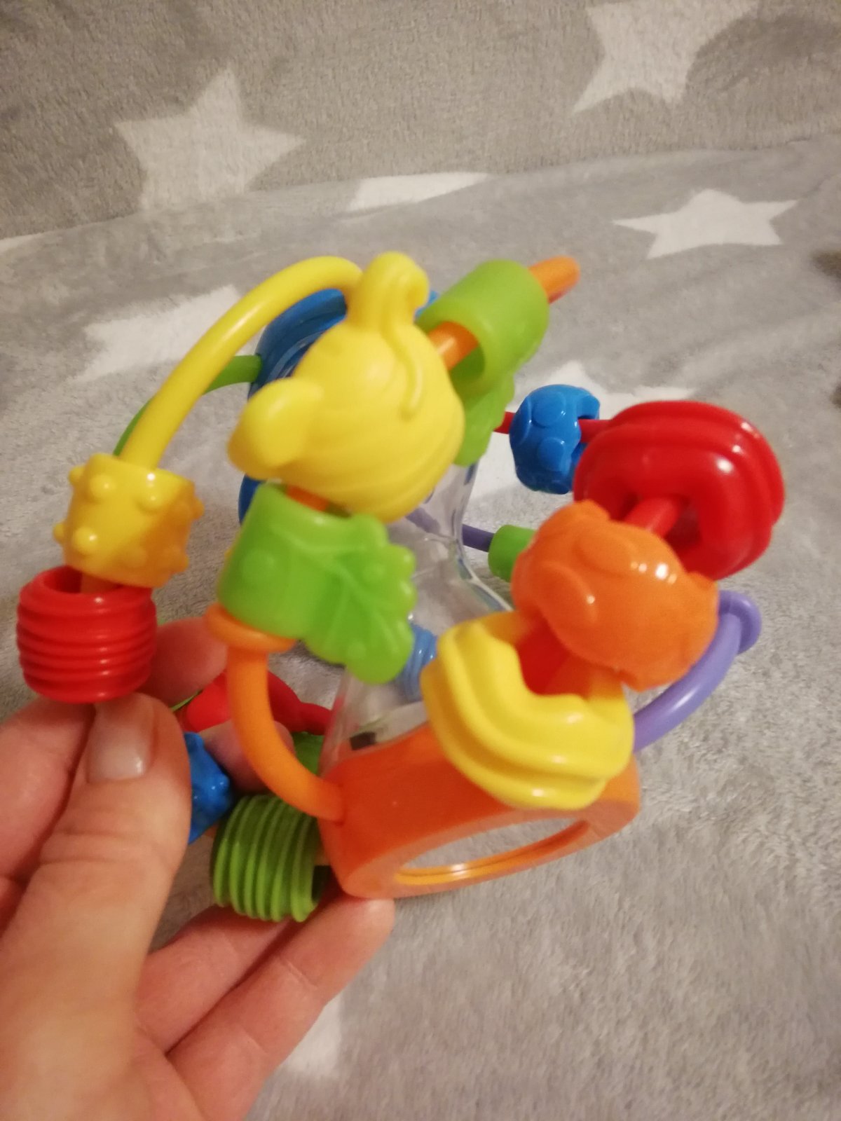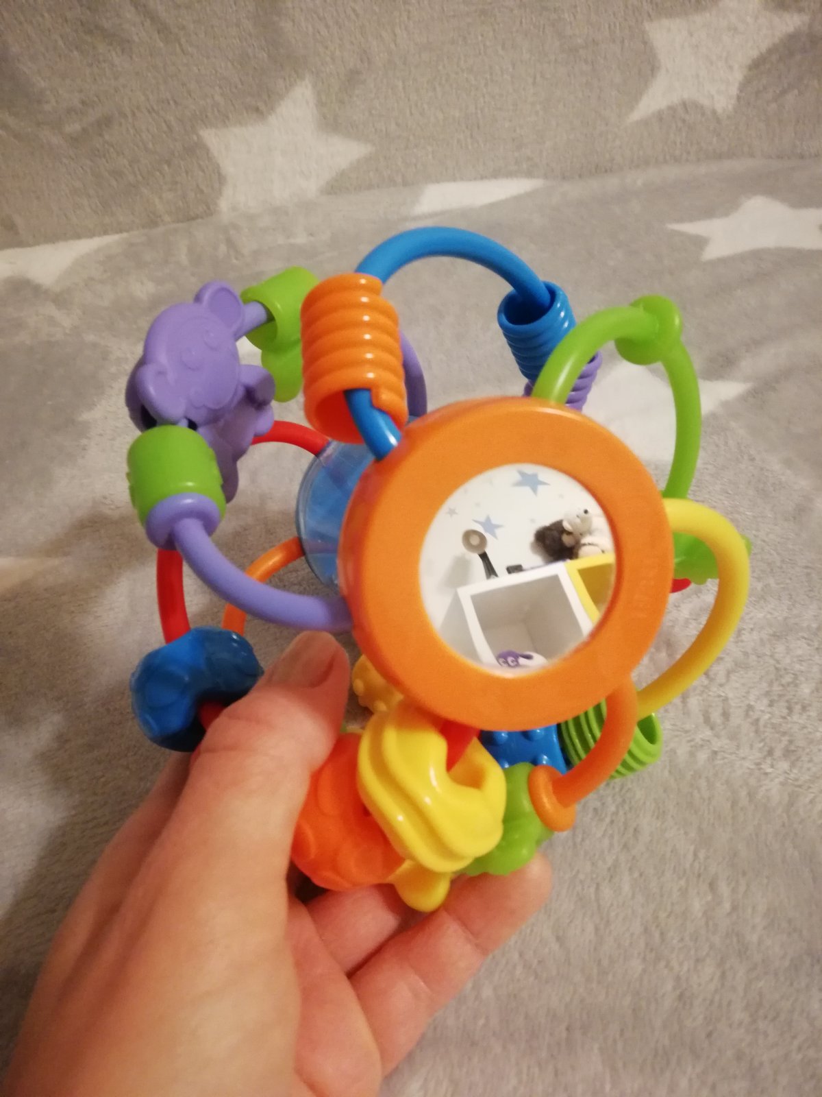 Predám hrkalku v dobrom stave po 1 dieťati. Obsahuje rôzne tvary, farby, ktoré sa dajú posúvať a otáčať. Hrkálka ma aj presýpacie hodiny ci zrkadielko. Zabaví vašu ratolesť :)