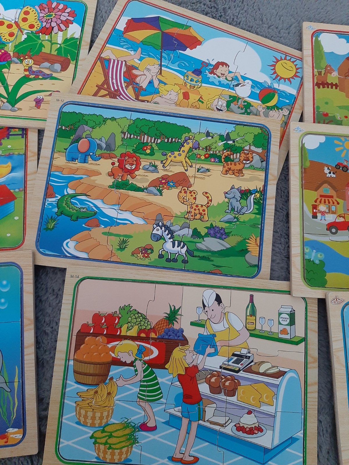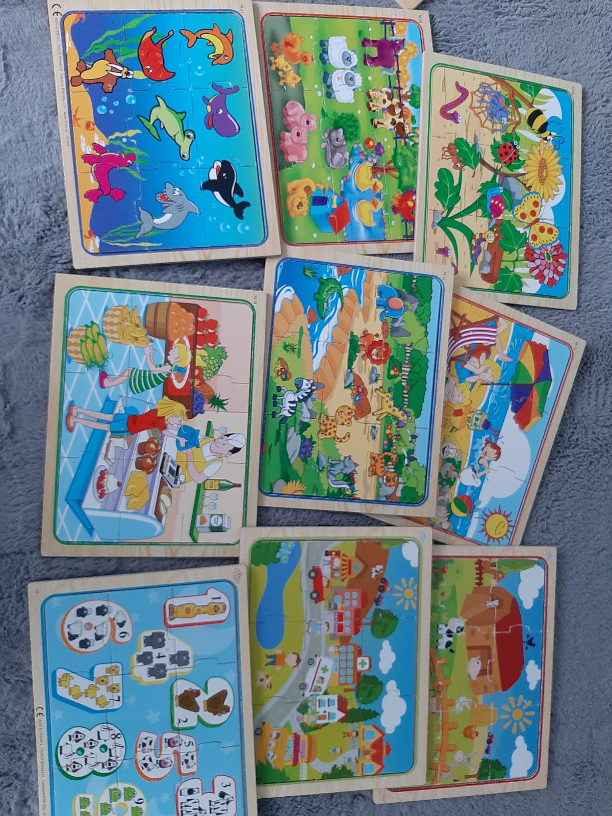 Krásne nepoškodené drevené vkladačky a puzzle.Sú komplet,nč z nich nechýba Cena spolu.