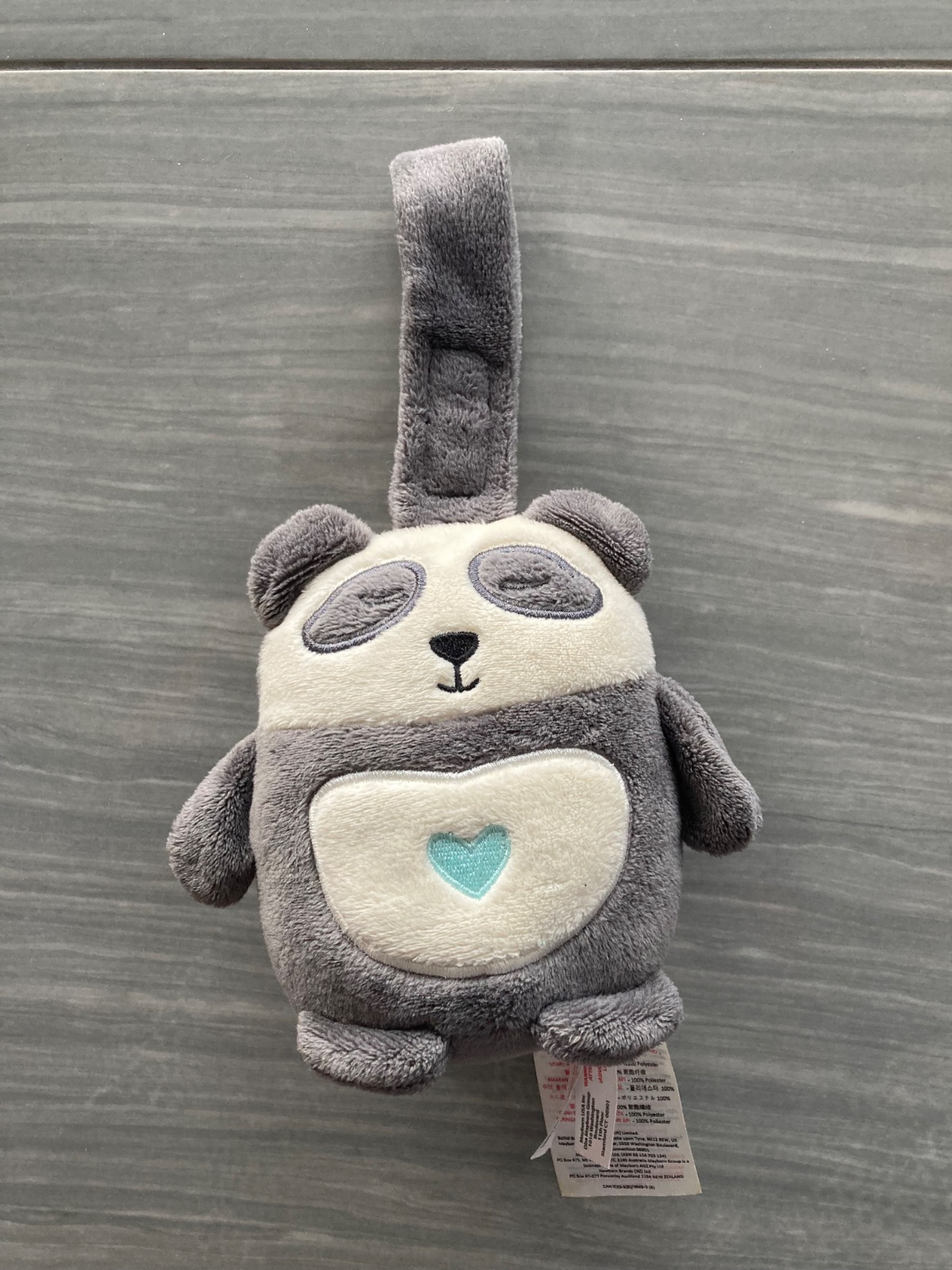 Panda sa dá zavesiť pomocou suchého zipsu. Môžete si vybrať z melódií alebo ďalších relaxačných zvukov - napríklad tlkot srdca alebo zvuk tečúcej vody.
