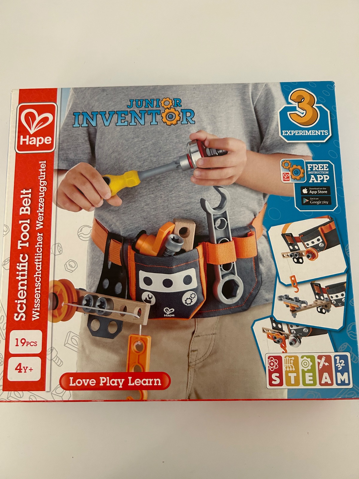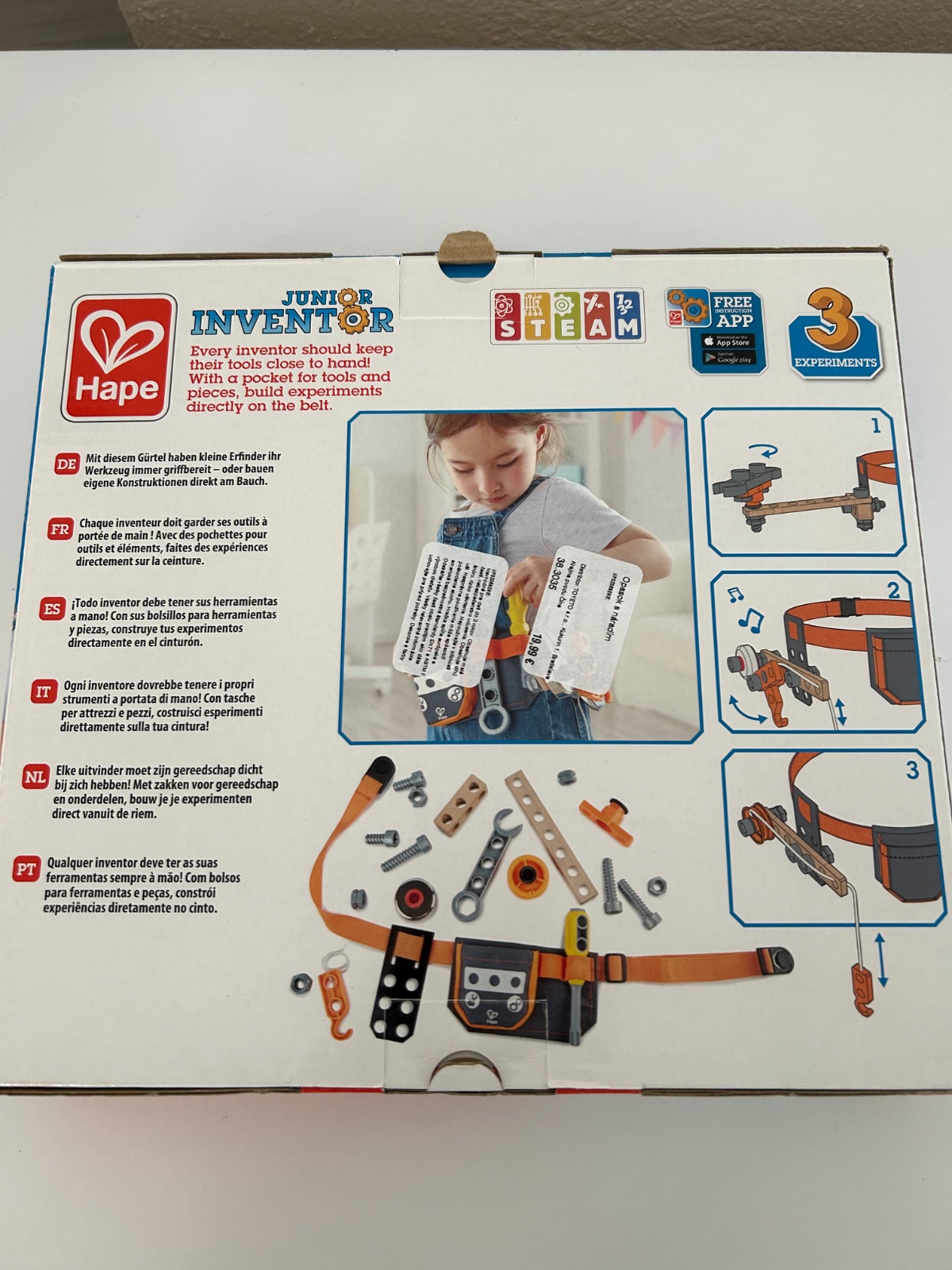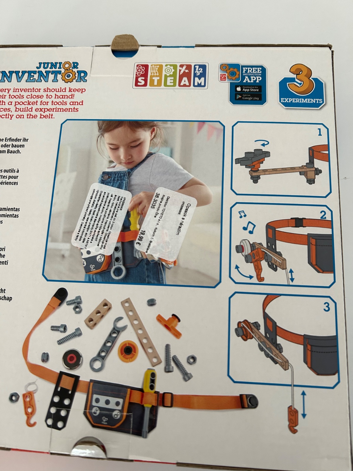Každý vynálezca by mal mať svoje nástroje po ruke! S vreckom na nástroje a kúsky, možnosť stavať experimenty priamo na páse. Držte svoje nástroje po ruke, zdvíhajte veci žeriavom, utiahnite matice a skrutky kľúčom, dokonca signalizujte svojim priateľom so zvončekom!
