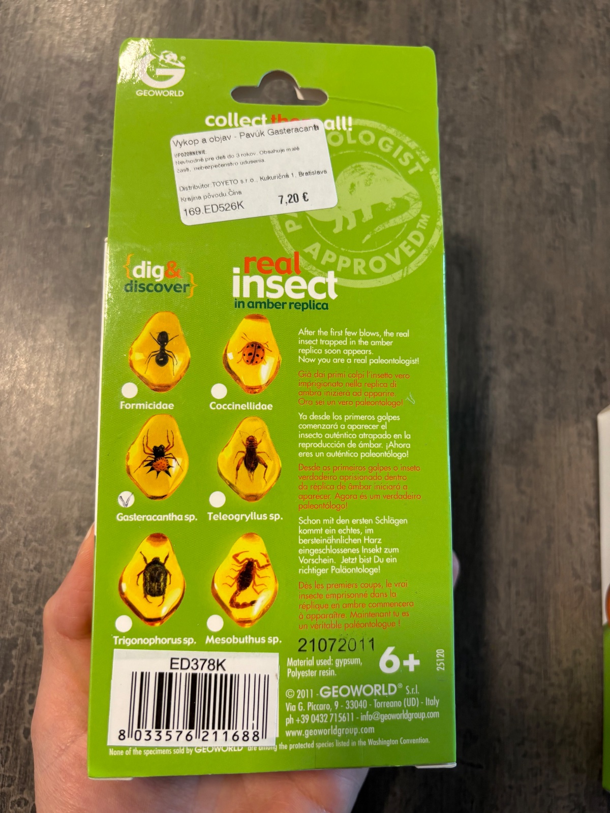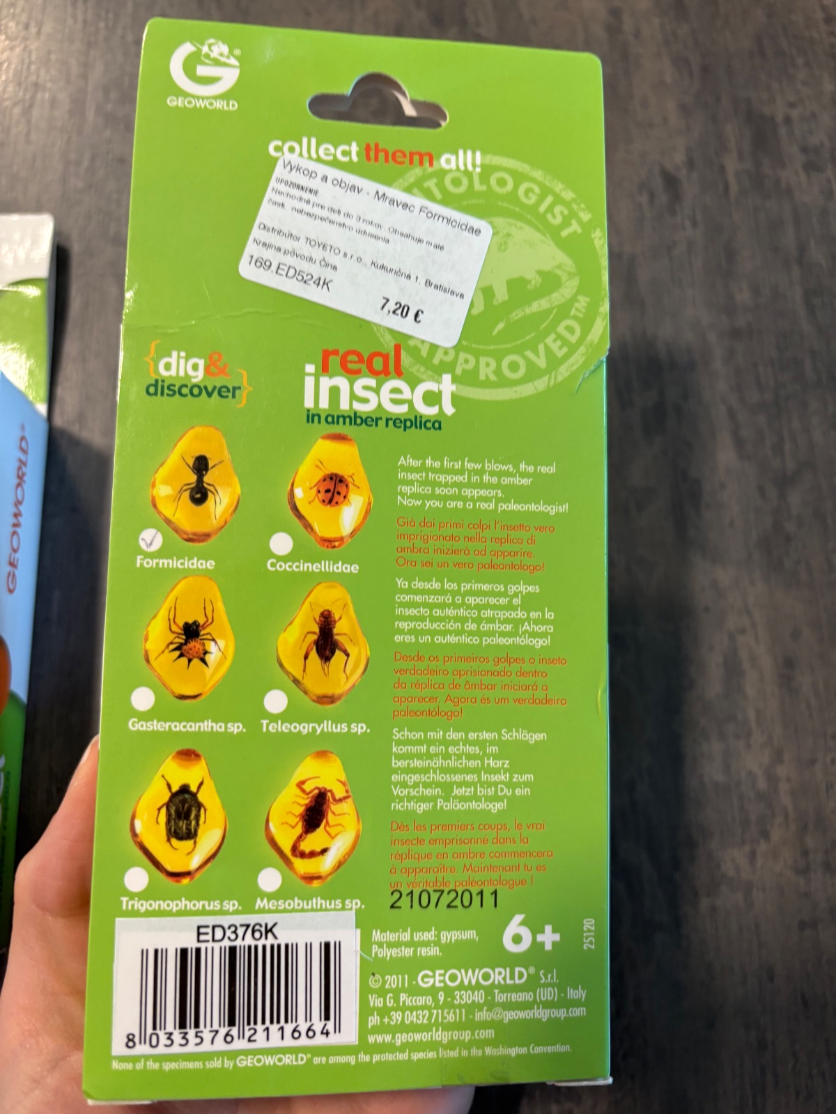 Mini sada na vykopávanie a sadrové dlaždice, ktoré ukrývajú ozajstný hmyz v jantári. Skvelá hračka pre deti od 6 rokov. Súčasťou balenia je plastové dláto a brožúra s vedeckými poznatkami.