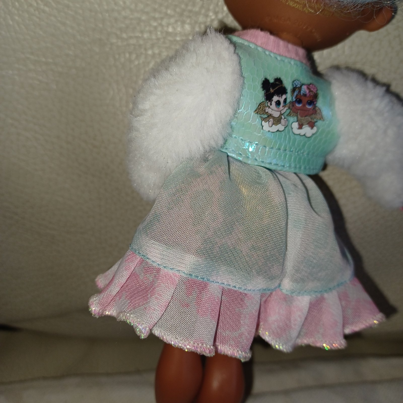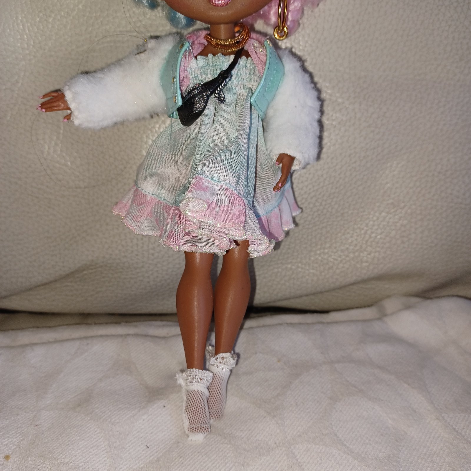 Bez poskodenia to co je na foto chýbajú topanky kabelka je čierna nie zlata jedna nausnica chyba