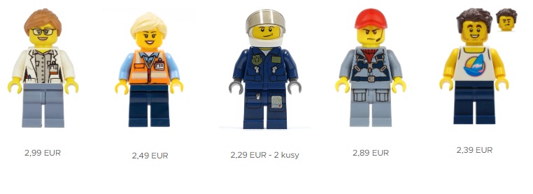 V ponuke nájdete LEGO figúrky hasičov, policajtov, sú tam tiež zlodeji, bežné LEGO city figúrky - chlapci aj dievčatá, Batman, Star Wars figúrky, Harry Potter, Hermiona atď.