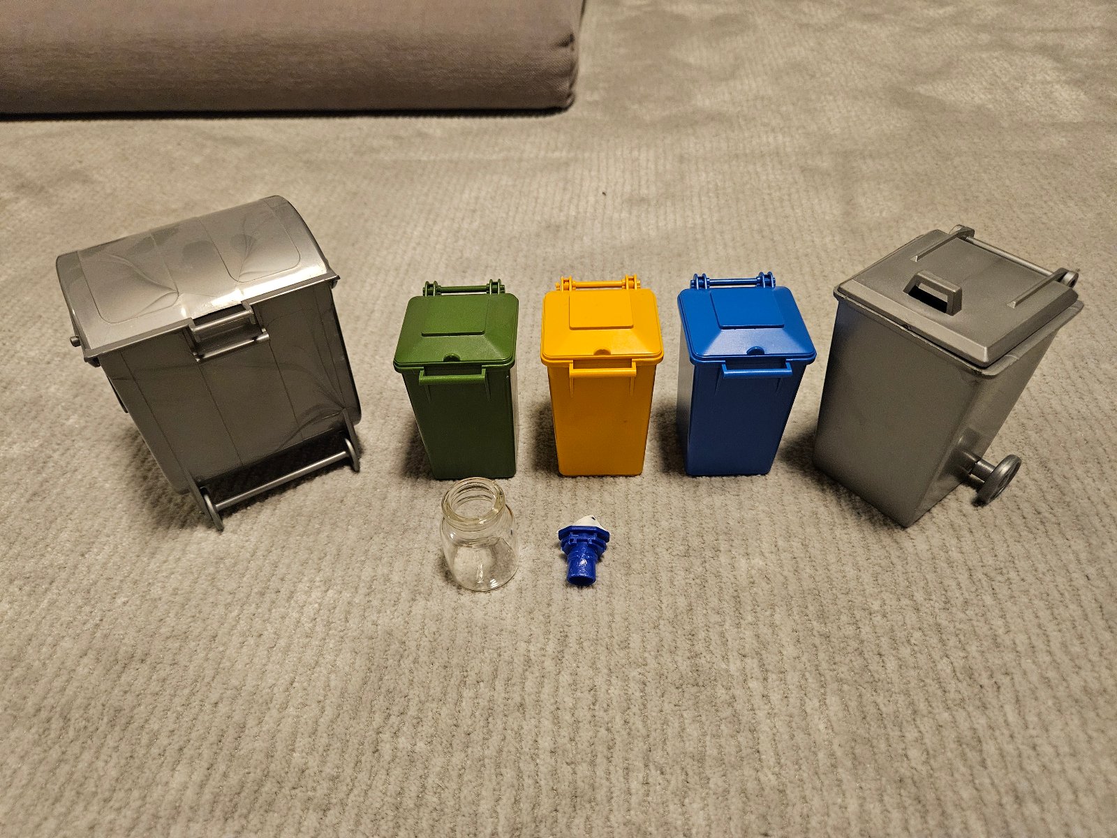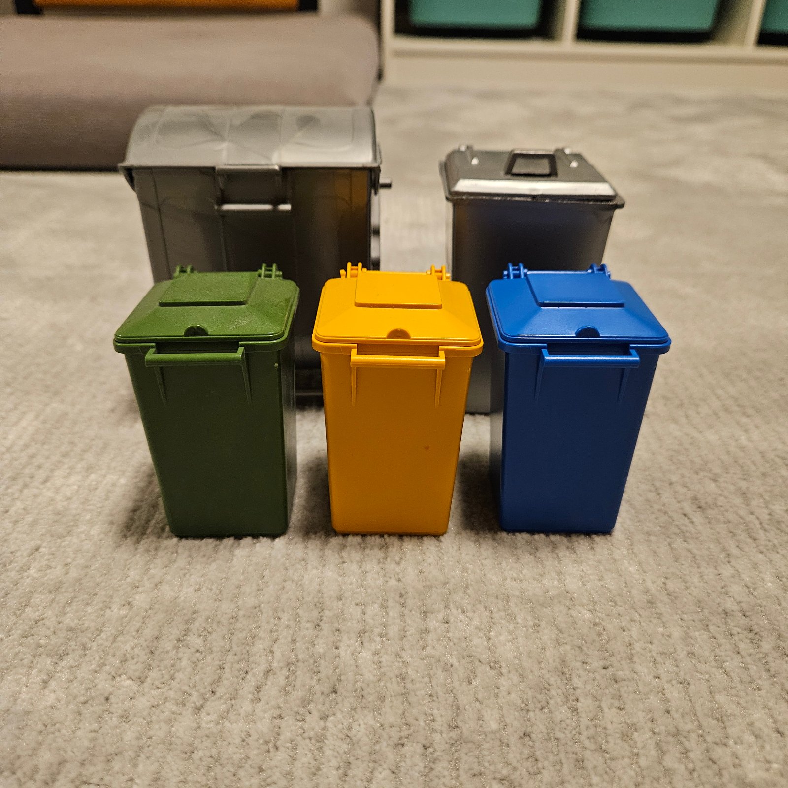 Predám sadu mini odpadkových košov na triedenie odpadu, zn. Bruder.