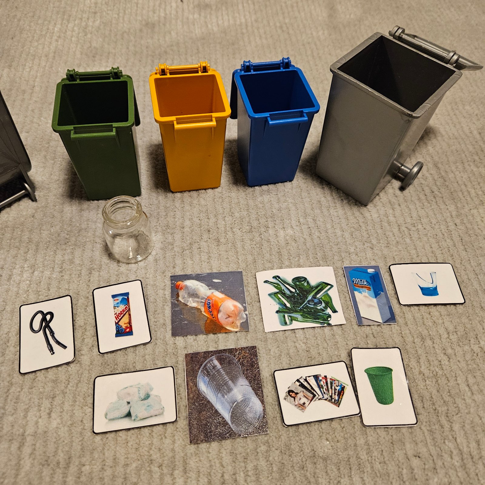 - zalaminované obrázky odpadu na triedenie