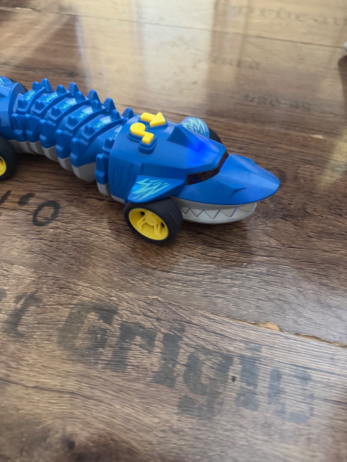 Ponúkam hračku žraloka, ktorý po stlačení tlačidla chodí akoby v esíčkach a hrá melódiu. Svietia mu aj oči. Bol sem-tam hraný, naďalej v peknom stave. Poštovné podľa taríf.