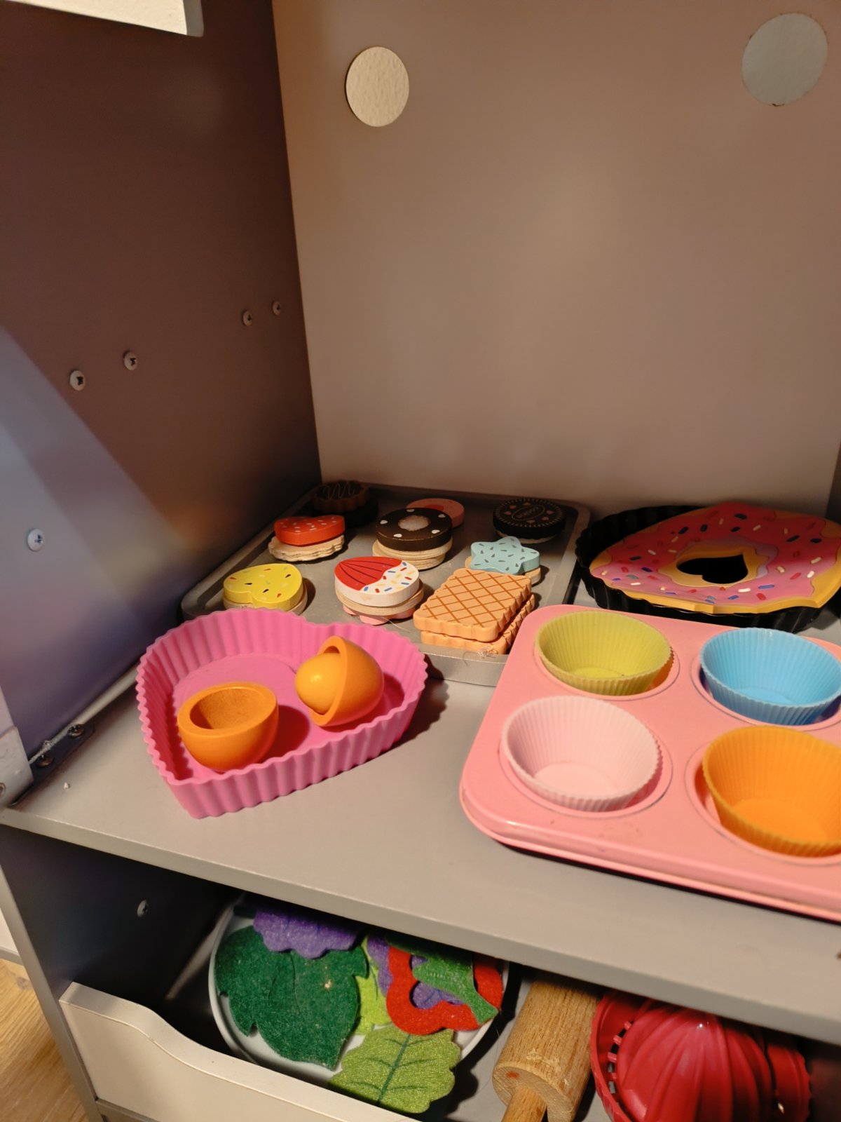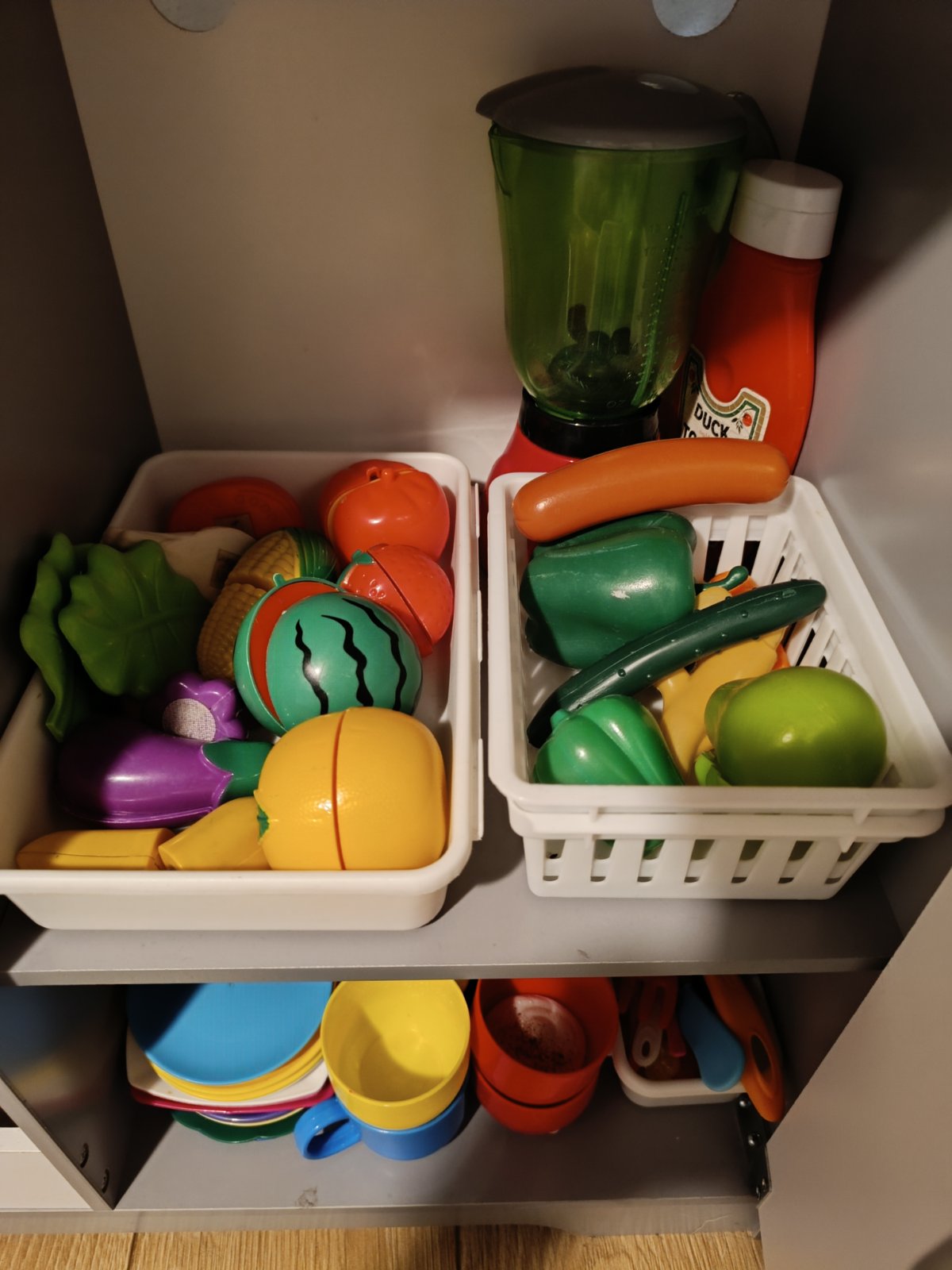 Krásna kidkraft kuchynka s množstvom príslušenstva navyše, horáky svietia vydávajú zvuky, má ladnicku a dávkovač ladu-funguje mechanicky. Z originálu chýbaju len dve stonky k jahodam ktore si viete ľahko dorobiť