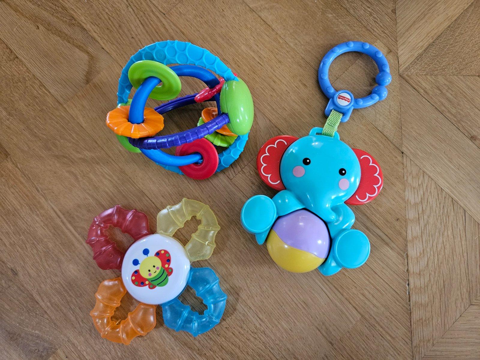 Hryzátko chladivé, závesný sloník a hračka do ruky
