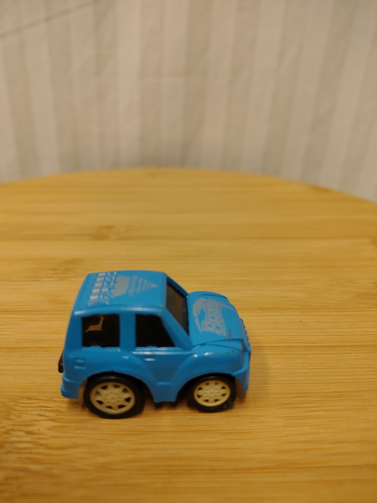 Modré autíčko na zotrvačník, Mini Racer, ide o drobné modré autíčko typu SUV/Off-road, ideálne pre malých pretekárov. Autíčko je plne funkčné a vybavené zotrvačníkom (pull-back mechanizmom) – stačí ho potiahnuť dozadu a samo vyštartuje vpred. Malá hračka, vhodné ako drobnosť do zbierky, do adventného kalendára alebo ako náhradné autíčko k prenosným autodráham a kamiónom.