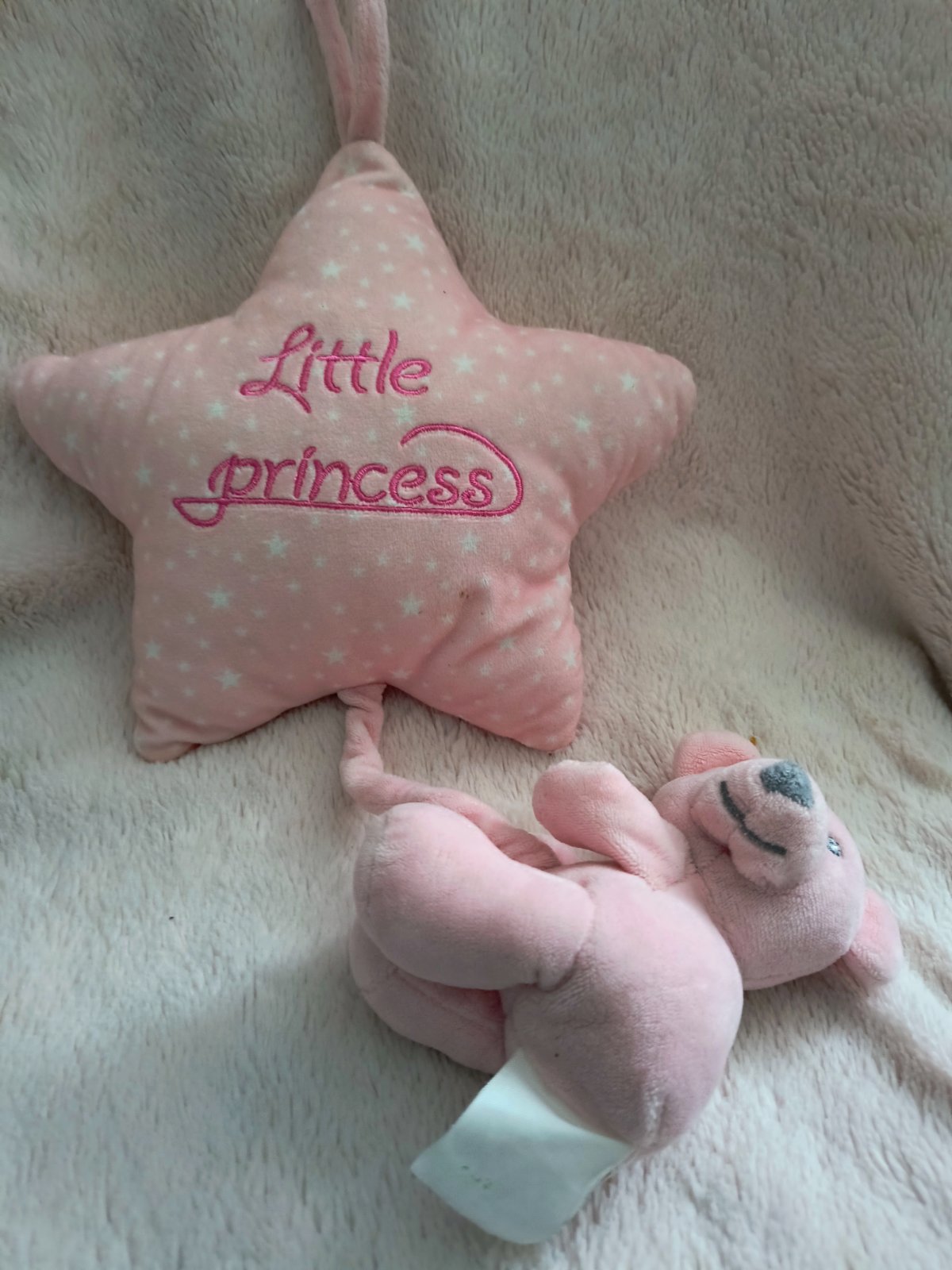 Pekný používaný stav bez vážnych poškodení. Po zatiahnuti medvedíka hra melódiu , možné aj zavesiť , priviazať